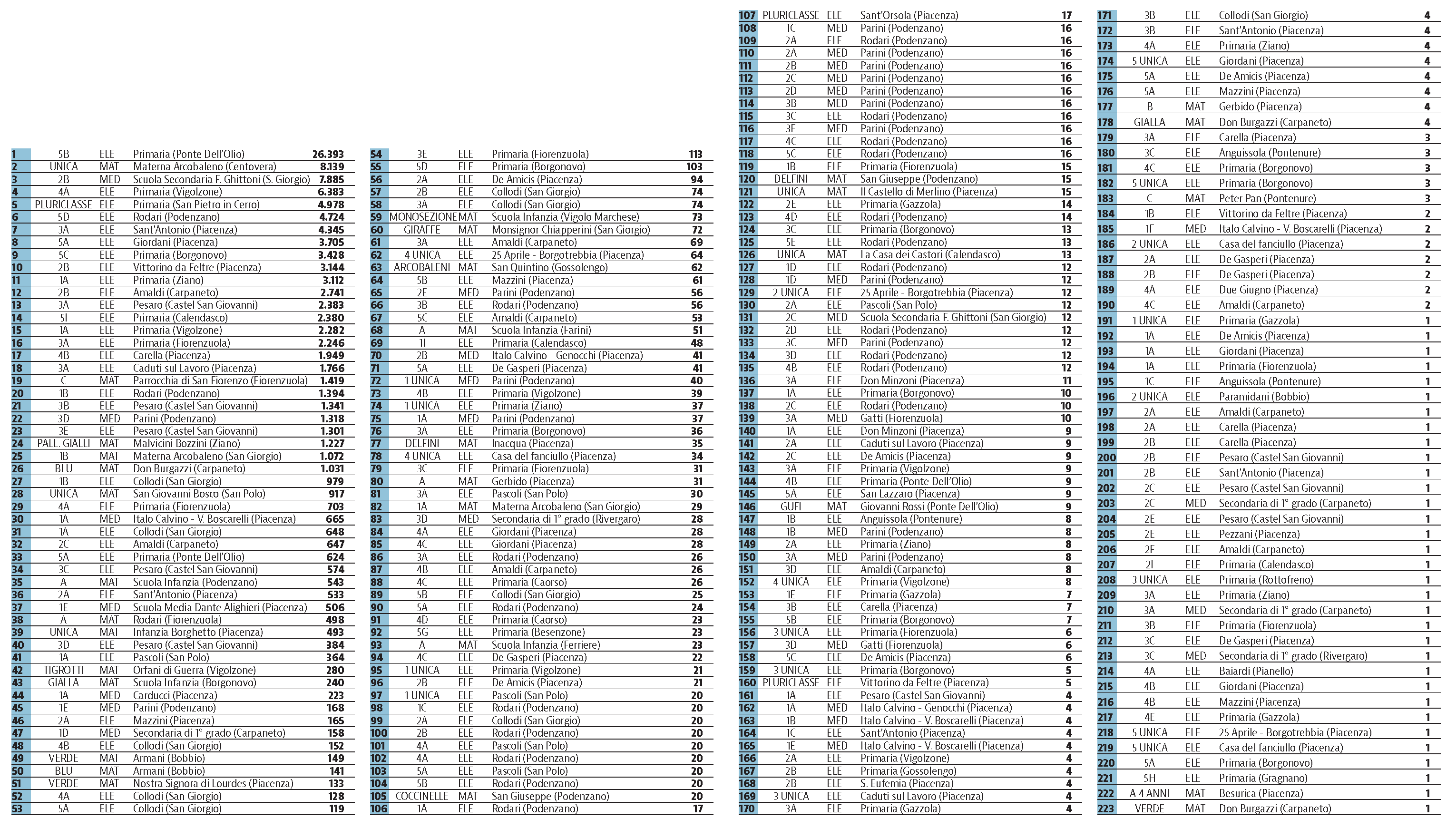 Continua il cammino dei giocatori di Che Classe: qui sotto una nuova classifica vi aggiornerà sul percorso dei vostri campioni, e sulla corsa che da qualche settimana ci unisce nella nona edizione del progetto dedicato alle scuole piacentine.
