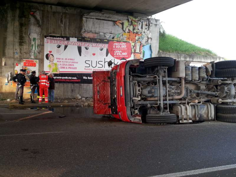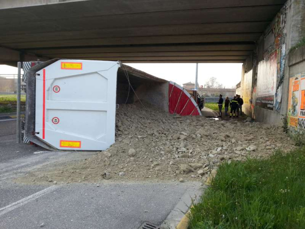 Un camion carico di terra si è ribaltato intorno alle 17 sulla rotonda all’uscita da Piacenza nei pressi di Montale sotto al cavalcavia della tangenziale. Per cause da chiarire, il conducente, un 64enne piacentino ha perso il controllo del mezzo. L’uomo fortunatamente è rimasto illeso. Il carico si è ribaltato sulla carreggiata. Il tratto è stato chiuso per chi arriva da Montale ed è diretto verso Piacenza. Il traffico è stato deviato sulla Caorsana. Sul posto sono presenti vigili del fuoco, soccorritori della Croce bianca, polizia, guardia di finanza, polizia municipale e provinciale.