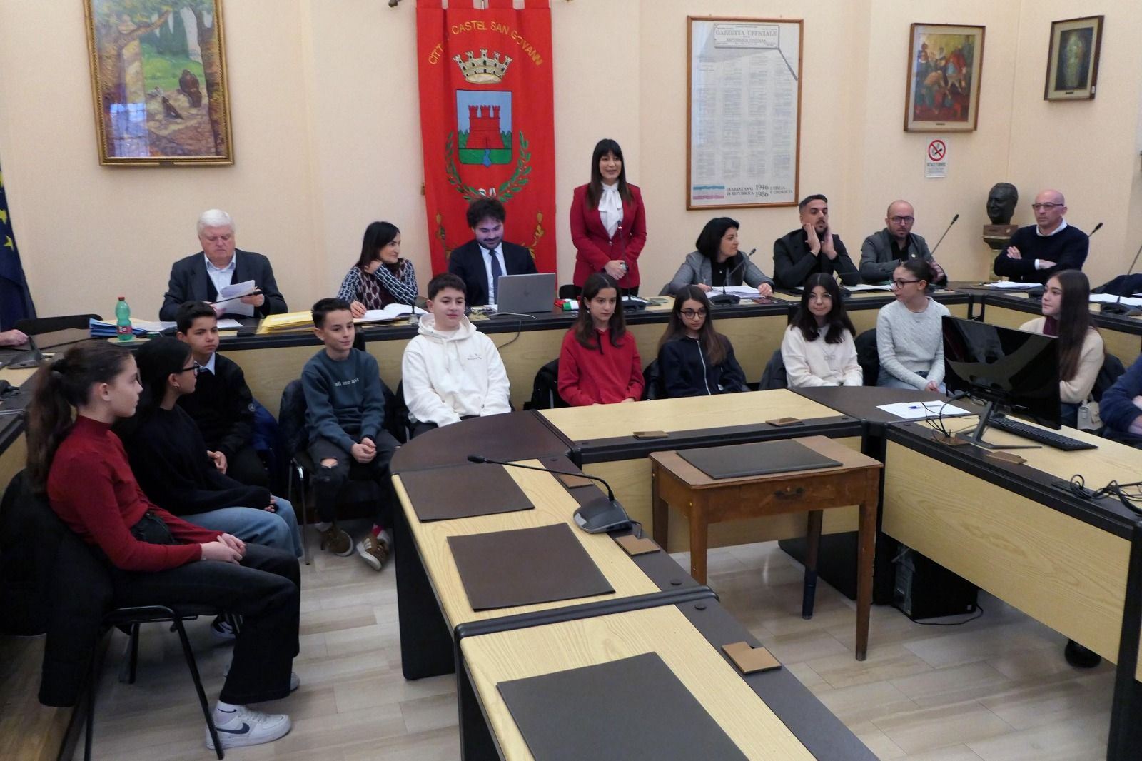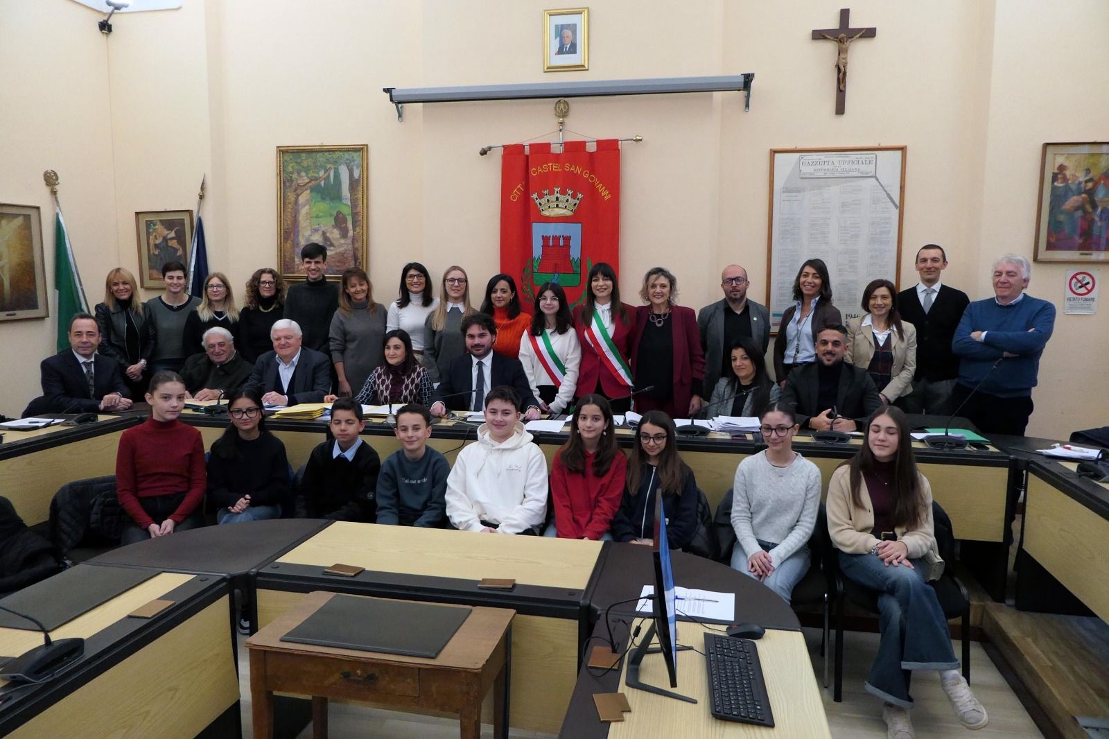 «La nostra energia, intraprendenza, curiosità a servizio di Castelsangiovanni e della nostra scuola». È la promessa che Valentina Fanini ha pronunciato subito dopo aver indossato la fascia di neo sindaca del consiglio comunale dei ragazzi e delle ragazze. Il primo consesso di questo tipo mai nato a Castelsangiovanni tanto che la collega, sindaca del consiglio «degli adulti» Valentina Stragliati, lo ha definito un «momento storico». Alla neo sindaca, alunna di scuola media al pari dei giovanissimi colleghi anch’essi seduti tra i banchi del consiglio, è arrivata anche la «benedizione» di un ministro, il ministro Tommaso Foti qui in veste di consigliere, e di tutti i restanti componenti del consiglio comunale di Castelsangiovanni. Valentina Fanini dopo aver prestato giuramento ha distribuito le deleghe ai compagni e compagne che siedono con lei nel nuovo consesso.