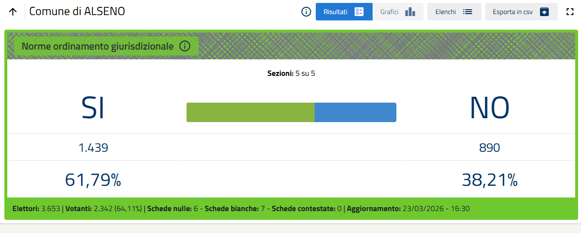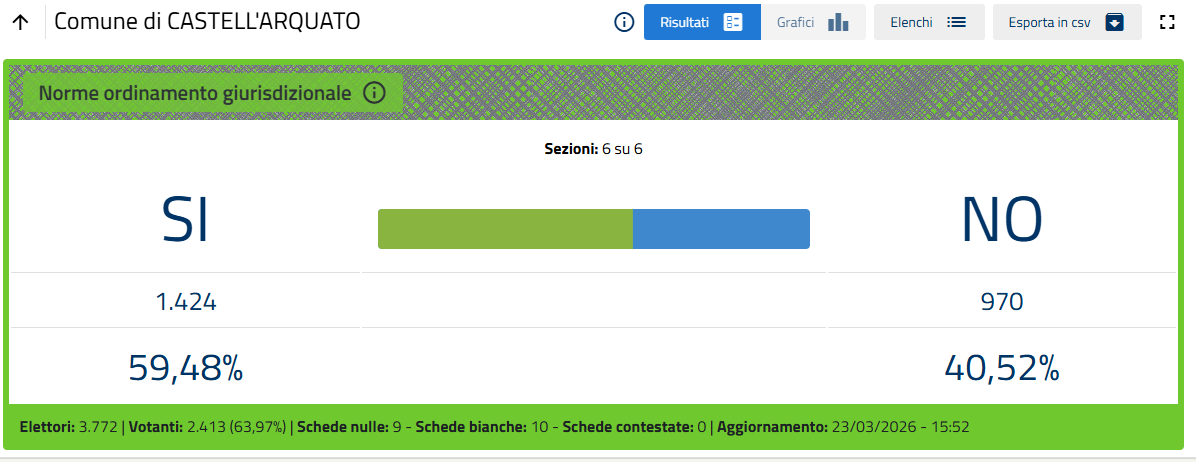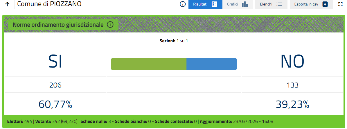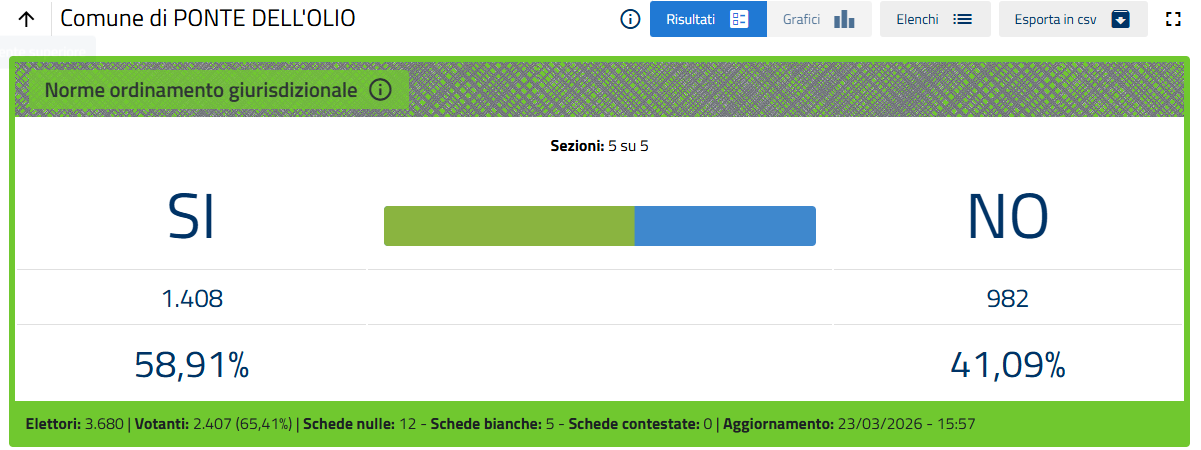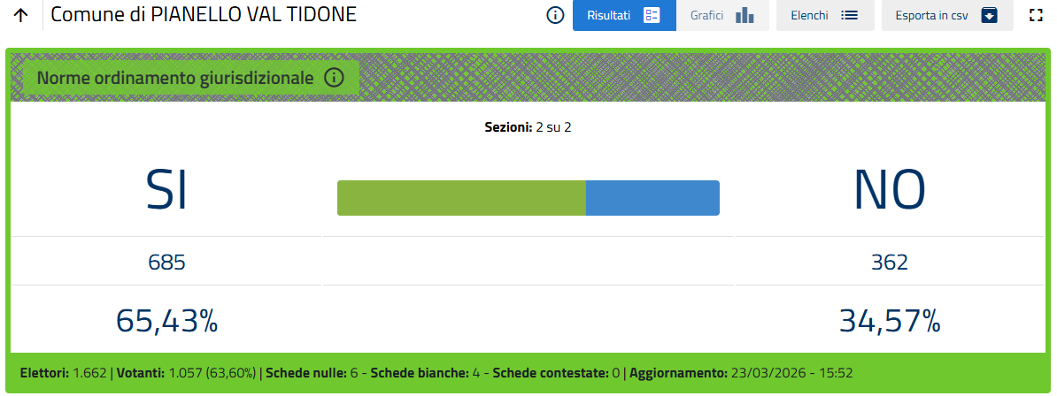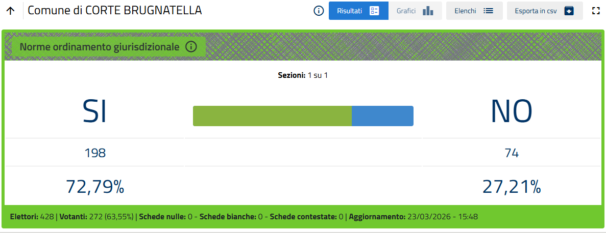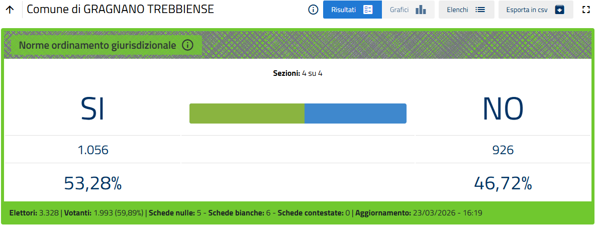 Nella sola città di Piacenza le percentuali definitive sono Sì 51,26%, No 48,74%.