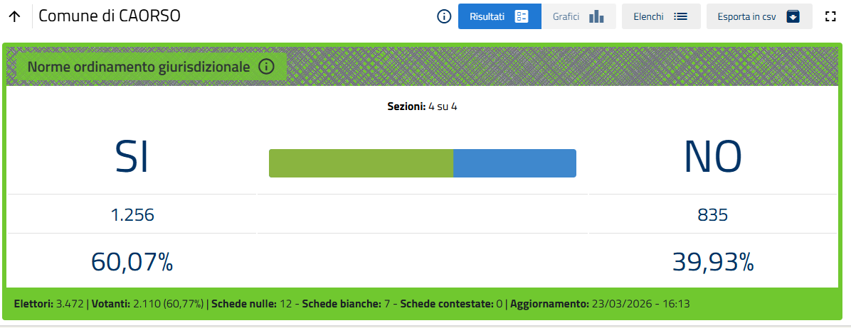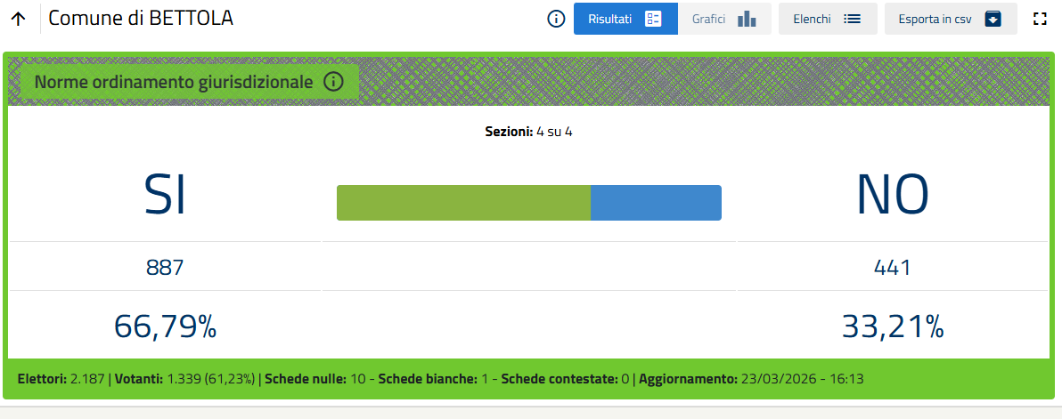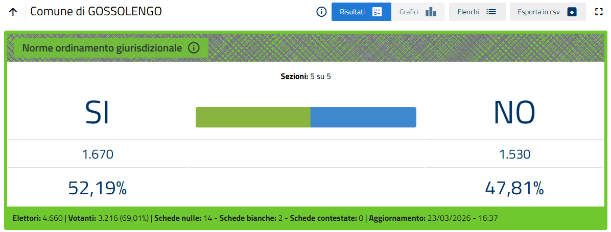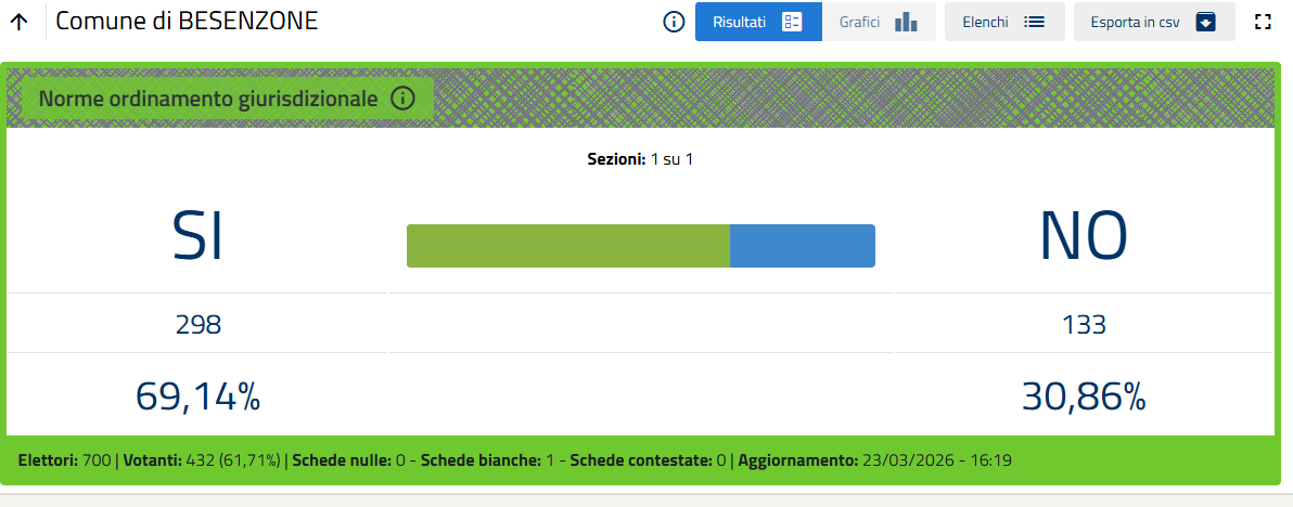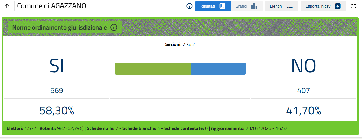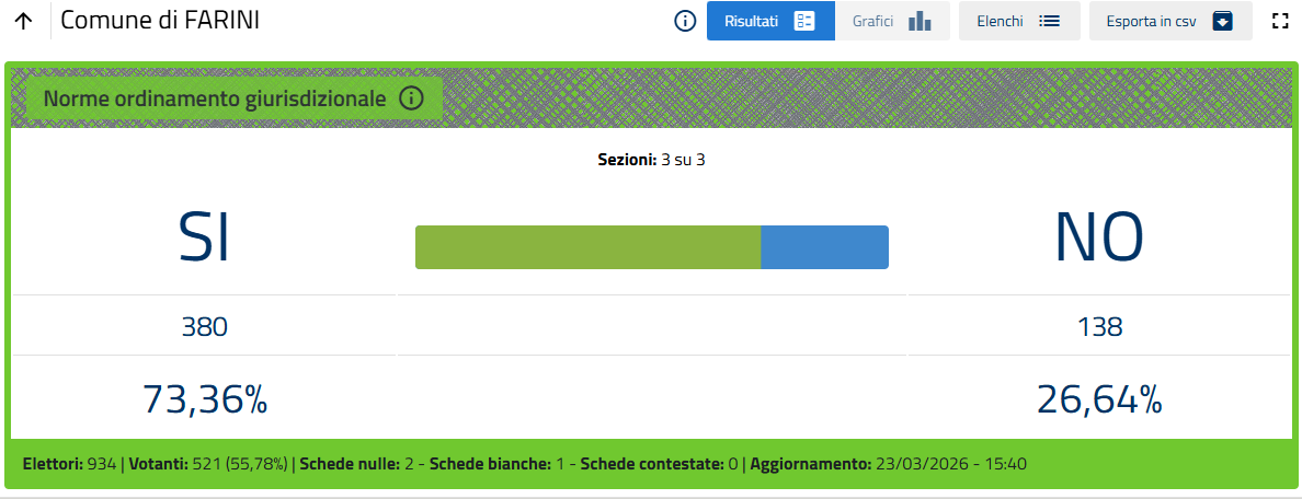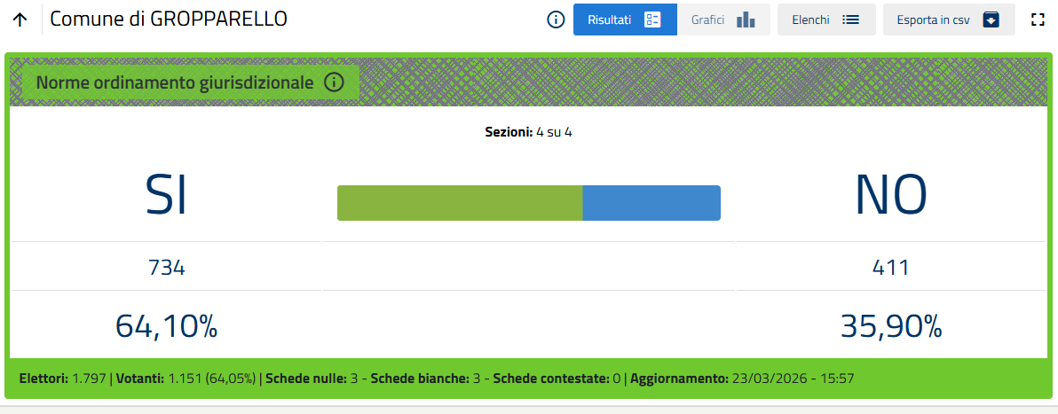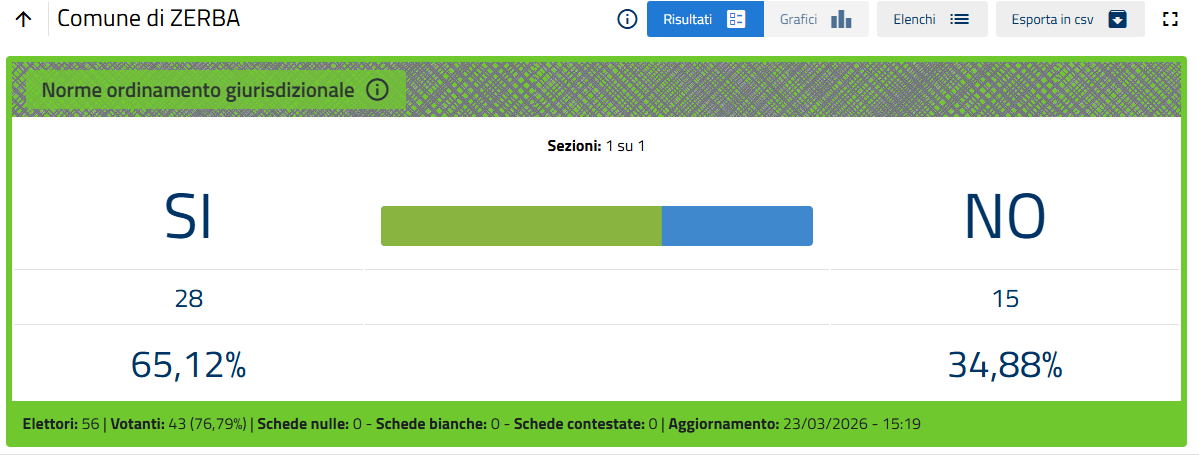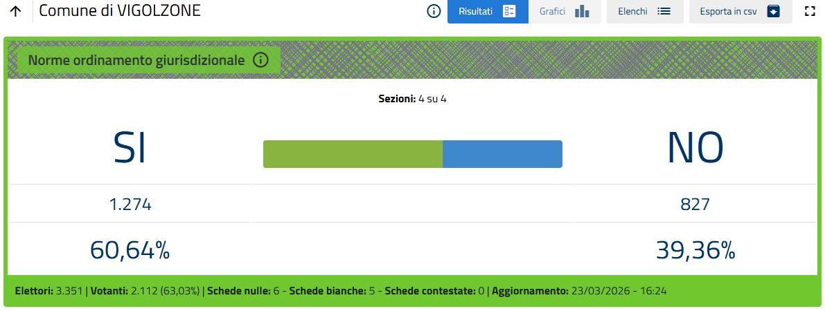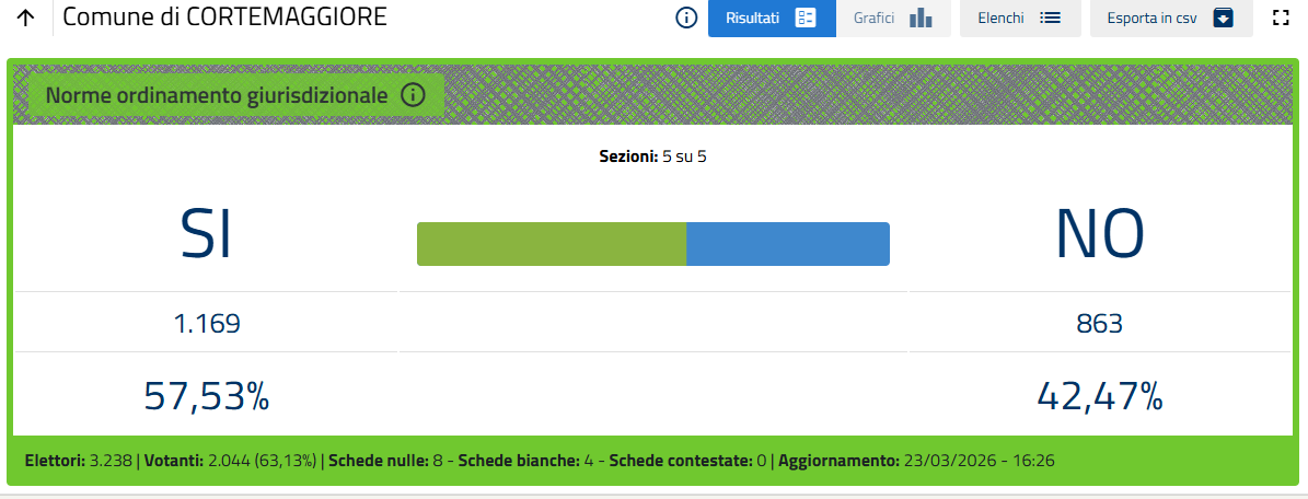 L'esito, ormai certo quando mancano poche sezioni al termine dello spoglio, è di oltre il 53% di voti a favore del No.