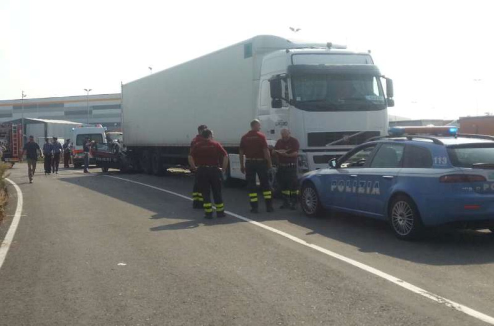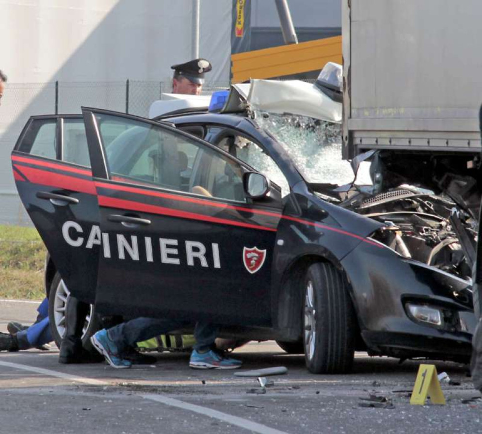 Un carabiniere di 39 anni, l’appuntato Luca di Pietra è morto e un altro di 46, appuntato scelto Massimo Banci, è stato trasportato dall’elisoccorso in condizioni disperate all’ospedale San Raffaele di Milano. Questo il pesantissimo bilancio della tragedia che si è consumata poco dopo le 12 sulla strada di accesso al polo logistico di Castelsangiovanni. I militari, appartenenti al Radiomobile di Piacenza, stavano inseguendo un’auto sospetta (a quanto pare una vettura di grossa cilindrata di colore grigio, forse rubata), quando si sono scontrati con un Tir parcheggiato sul lato sinistro della carreggiata. Il carabiniere alla guida è morto sul colpo, mentre il collega è stato estratto dalle lamiere e portato a Milano.