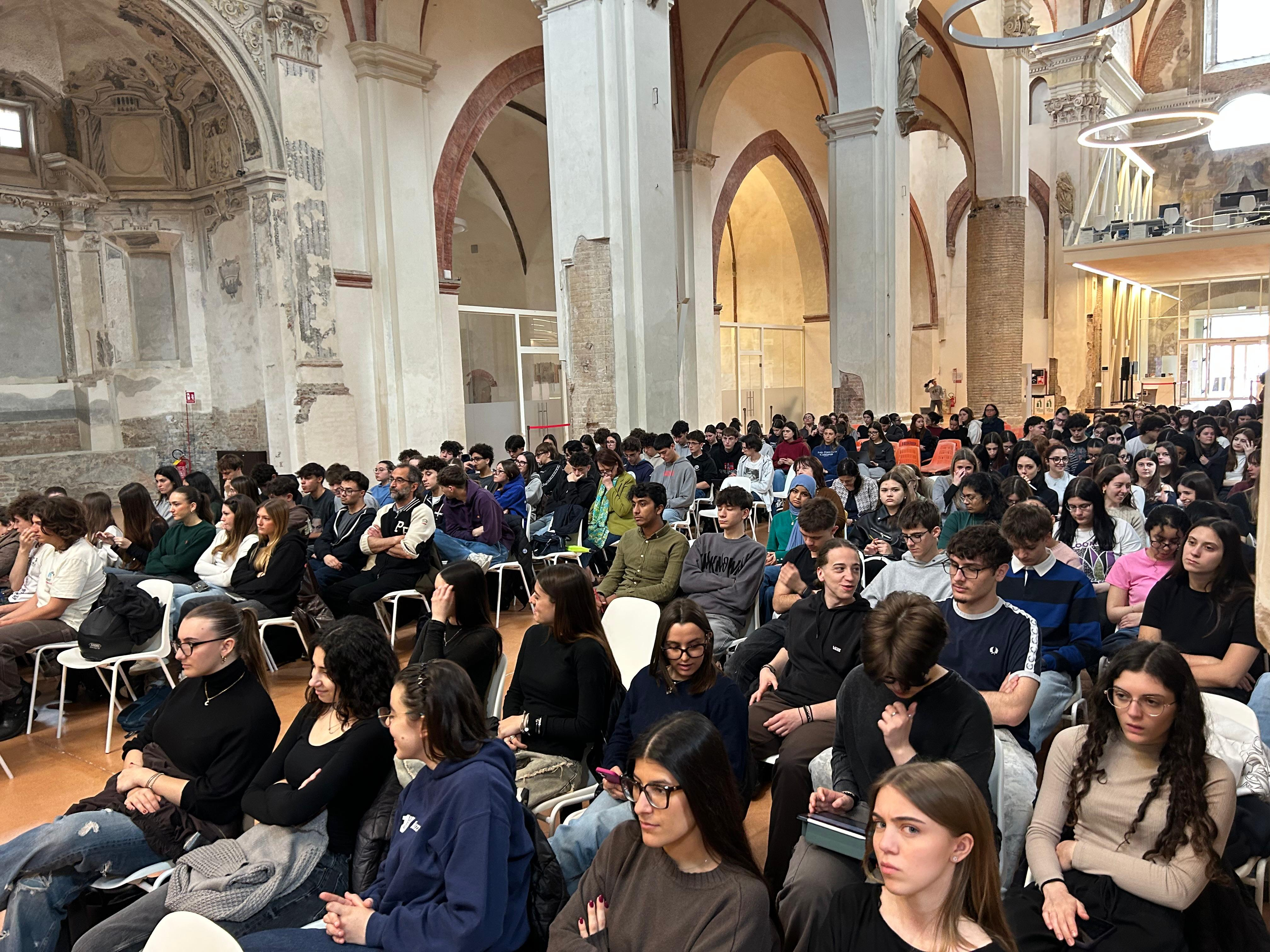 L’intervento del sociologo davanti agli studenti piacentini riuniti all’ex chiesa del Carmine, nell’incontro “Orientarsi nel disordine globale”