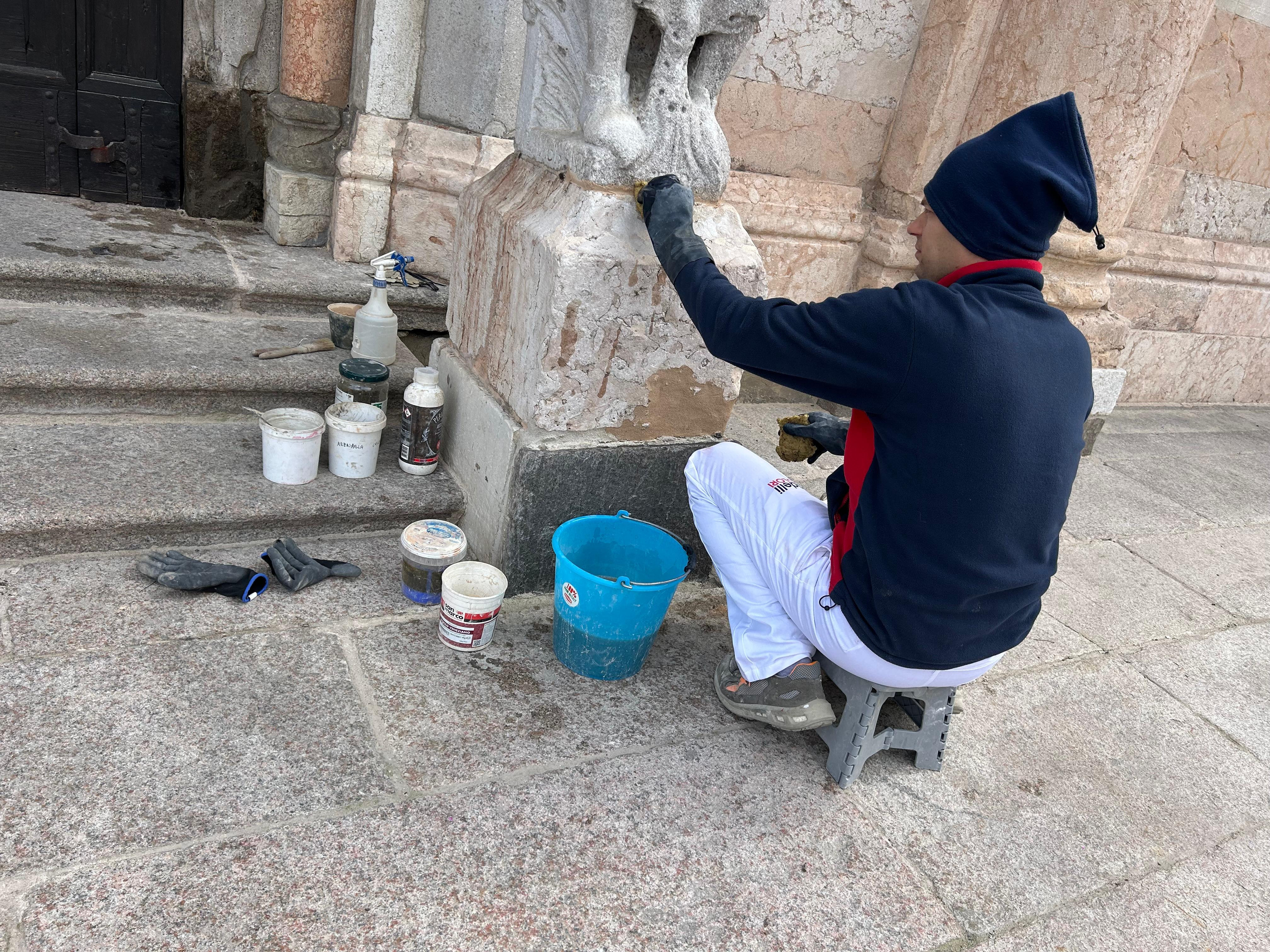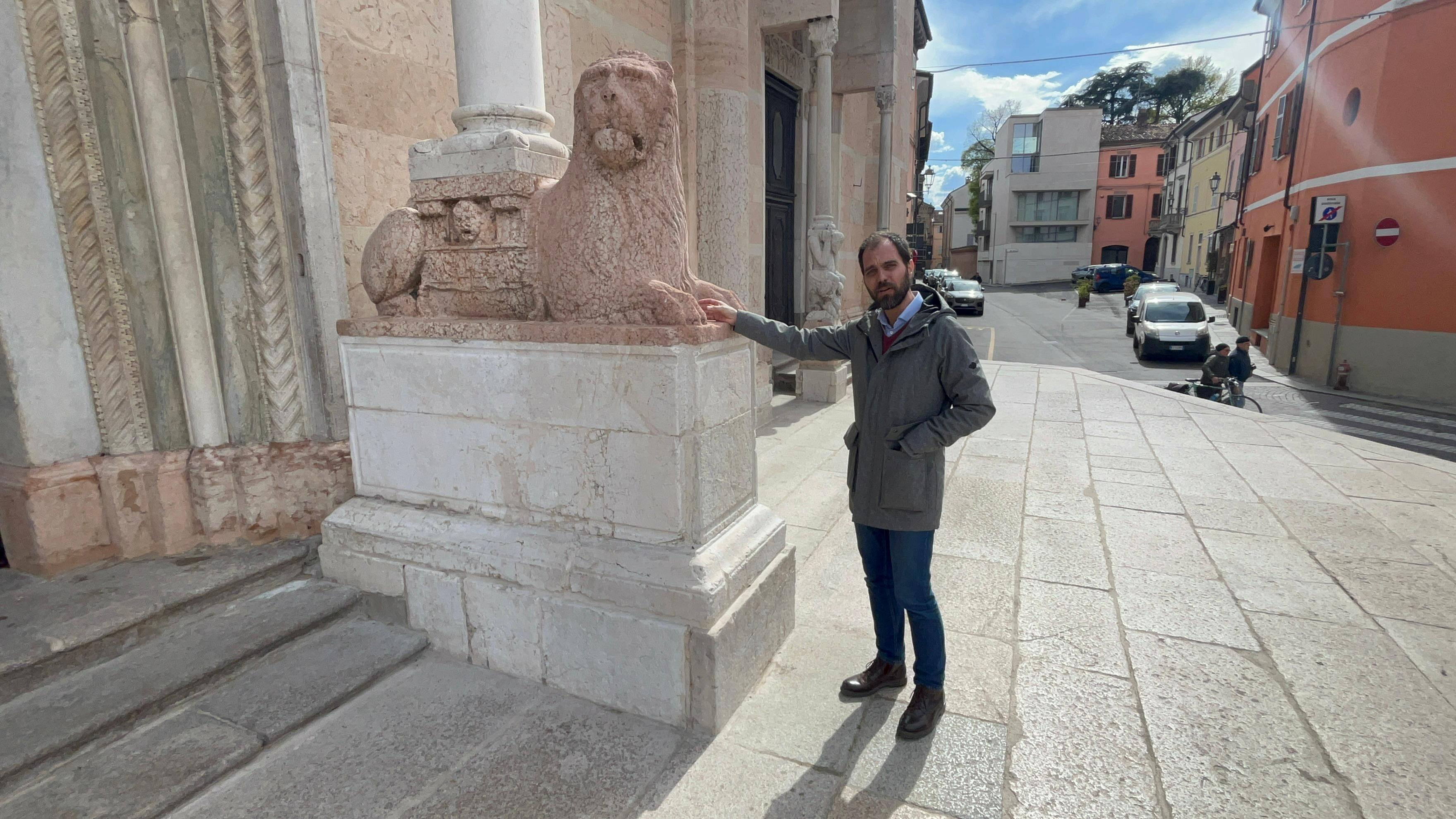 «Una situazione che lascia amareggiati», racconta Manuel Ferrari, direttore dell’ufficio beni culturali della Diocesi, colpito da quanto trovato nei giorni scorsi. «Sul leone del portale centrale c’era un bicchiere con la vodka, versata e colata lungo il basamento. La macchia era ben visibile e i restauratori sono dovuti tornare per intervenire di nuovo». Un gesto che va oltre il semplice degrado materiale. «È un fatto significativo dal punto di vista culturale: manca la percezione di cosa rappresenti un monumento come questo per Piacenza. Chi lo sporca o lo imbratta non si rende conto del suo valore, né dello sforzo necessario per conservarlo. È una mancanza di rispetto verso chi ha lavorato a questo intervento. È grave».