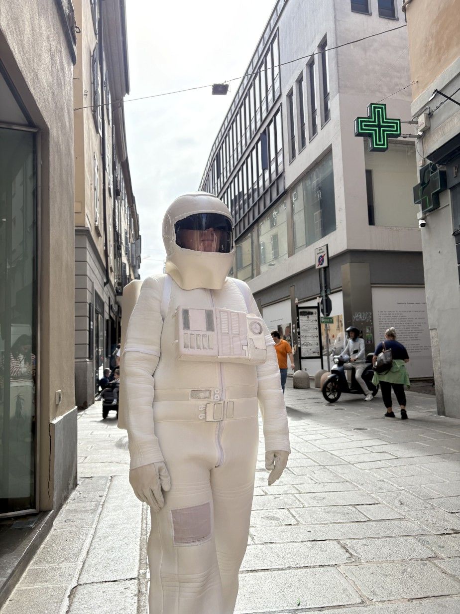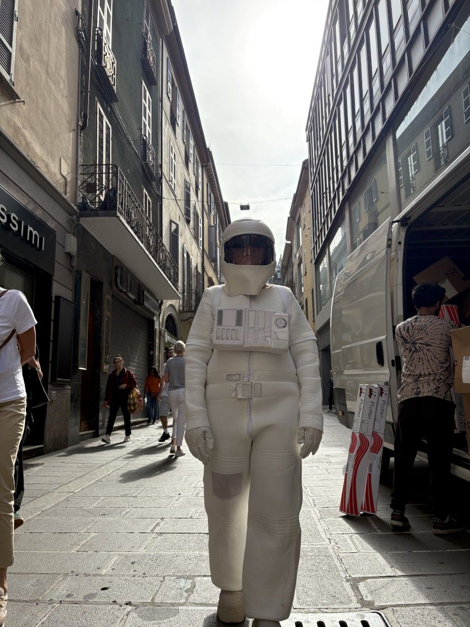 In un’anteprima spettacolare stamattina il centro città è stato visitato dall’astronauta Elisabetta Consonni: la sua camminata urbana, “Il secondo paradosso di Zenone” è un lentissimo attraversamento spaziale. Nonostante la continua provocazione a compiere azioni repentine per reagire agli stimoli dell’ambiente urbano, l’astronauta ha gestito il suo tempo con lentezza, in un contrasto sempre più parossistico con la realtà attorno. Sempre fedelmente in slow motion, si è cimentata in azioni quotidiane e ha interagito con le persone che ha incontrato fino alla chiusura ai tavolini del bar sotto al Comune insieme alla Sindaca.
