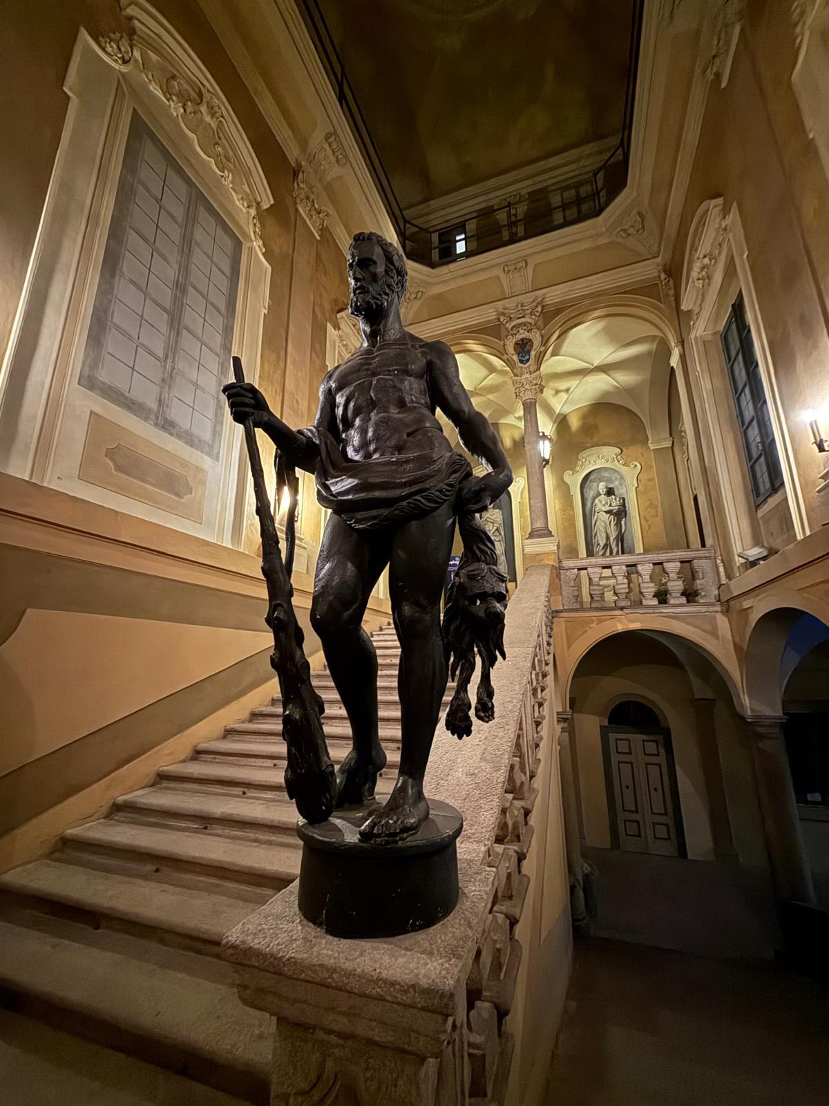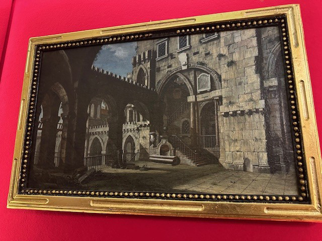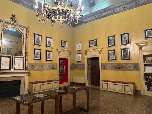 E proprio lungo il corridoio ecco decine di incisioni di Giuseppe Galli da Bibbiena: paesaggi architettonici, macchine barocche che sono catafalchi funebri, scenografie di interni. Materiali e visioni che ha ispirato il nostro pittore di fama mondiale, Gian Paolo Panini (1691 – 1765), suo coetaneo e presente a Piacenza sino al 1711.