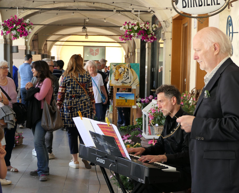 Per i volontari è stato un super lavoro, iniziato già la sera precedente quando la sagra legata ai riti del Calendimaggio ha aperto i battenti, anticipando l'avvio questa mattina della tradizionale fiera del 1 maggio. Sotto gli stand della Pro loco i volontari distribuiscono centinaia di frittate, piatto tipico della sagra d'la galeina grisa, insieme a sempre gettonatissimi panini imbottiti con il cotechino piccolo, o cotechino corto specialità tutta pianellese. Tutt'attorno luna park, bancarelle, mostre d'arte sotto i portici con anche esibizioni di musica.