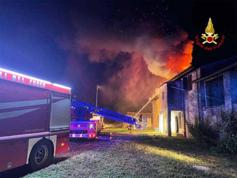 Un violento incendio è divampato nella notte tra domenica 19 e lunedì 20 settembre in una cascina nelle campagne di Cadeo. Le fiamme, che stando a una prima ricostruzione si sarebbero sprigionate per un cortocircuito elettrico, hanno presto lambito il secondo piano di un edificio situato all’interno di una corte agricola. Sul posto sono giunte tre squadre di vigili del fuoco provenienti da Piacenza, una da Fiorenzuola e un’autobotte da Cremona.