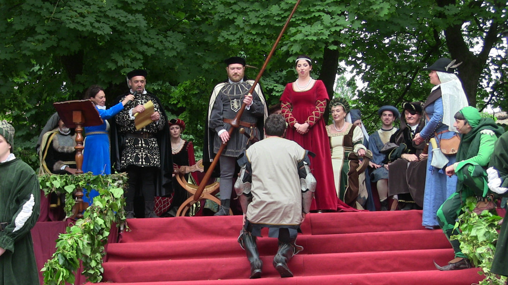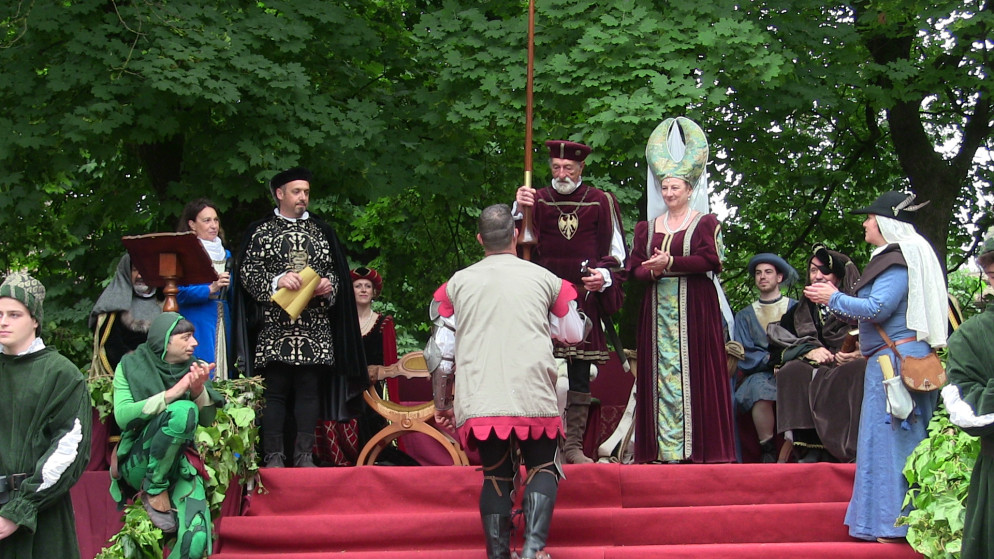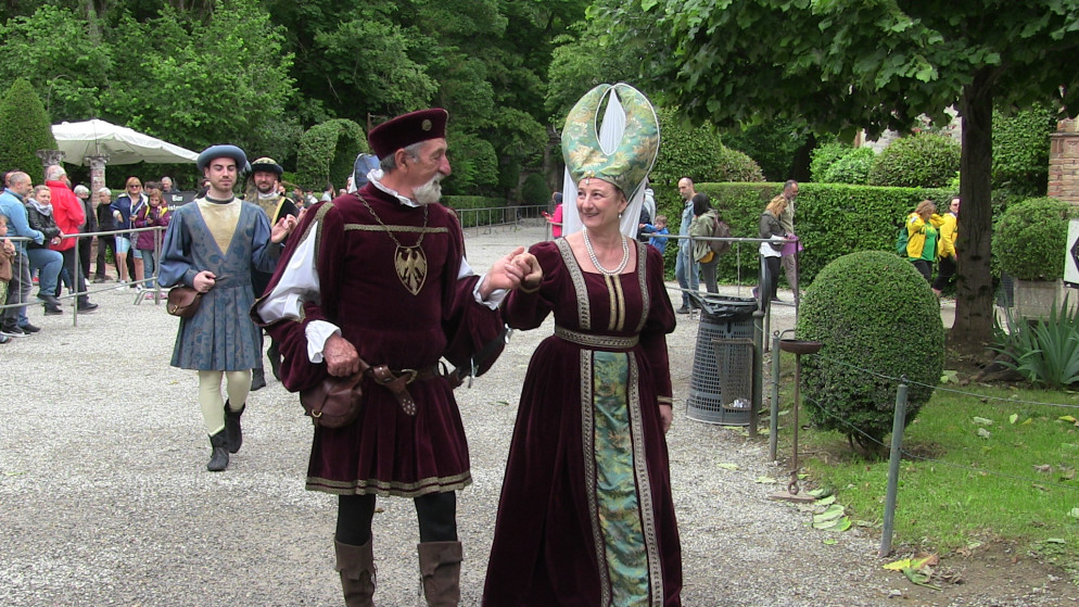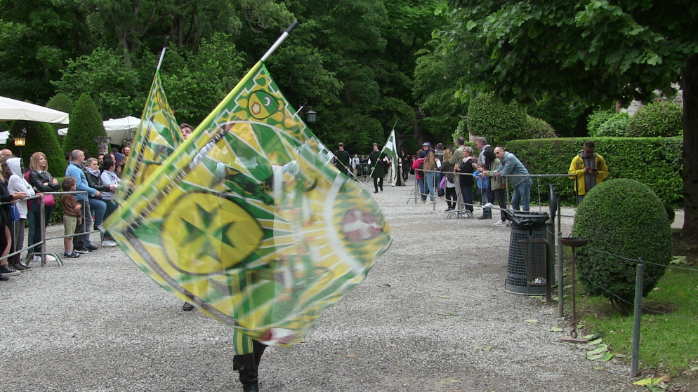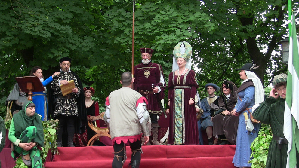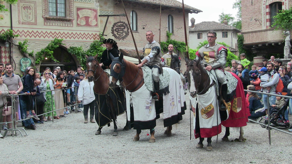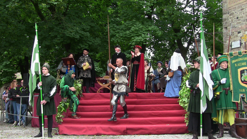 Dal castello della famiglia Visconti di Modrone è partito il lungo corteo, aperto dai musicanti, dagli sbandieratori e dai nobili rappresentanti delle casate di tutto il territorio piacentino che hanno accolto la dama Valentina, signora d’Asti, di passaggio a Grazzano Visconti prima di raggiungere la Francia e il suo futuro sposo, il duca d’Orleans. L’atmosfera che si è respirata è stata quella di un borgo di fine trecento, addobbato a festa profumato di fiori. Le vie e le piazze sono state animate da spettacoli di saltimbanchi, falconieri, cantastorie e dal giullare Nespolo, mentre in Cortevecchia i cavalieri cristiani e saraceni si sono sfidati un torneo d’armi. D’obbligo la quintana a cavallo, il torneo a cavallo che ogni anno decreta la casata che avrà l’onore di accompagnare la signora d’Asti nel suo viaggio verso la Francia. Quest’anno è stata la volta dei Malaspina di Bobbio con il suo rappresentante Beltrando da Bianello, che ha avuto la meglio sugli altri cavalieri.