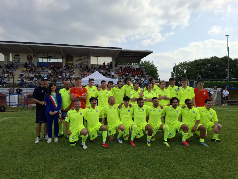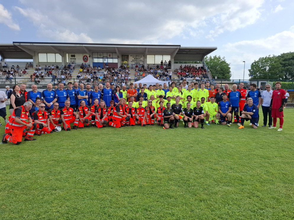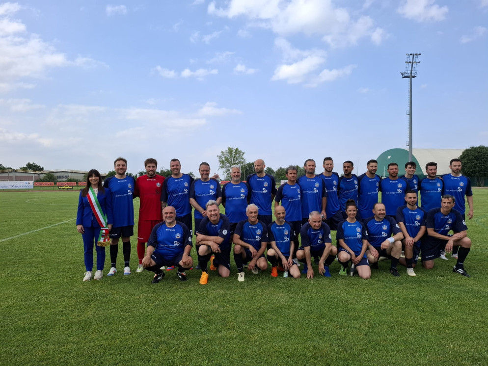 Oltre 300 spettatori hanno assistito al match tra la squadra capitanata da Enrico Ruggeri e la Nazionale manager: l'incasso sarà devoluto alla Pubblica Assistenza