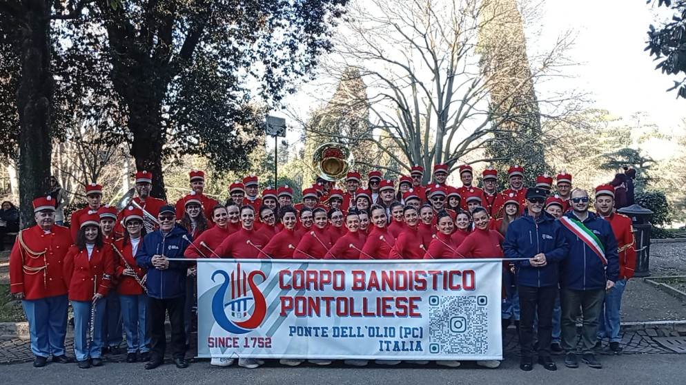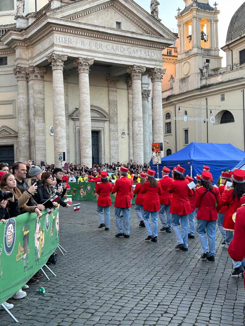 Un concerto itinerante nelle vie della Capitale tra piazza del Popolo e piazza di Spagna ha visto protagonista la formazione musicale piacentina che ha festeggiato così il suo 273esimo anniversario di fondazione. Una giornata emozionante per tutti i componenti e per il direttore, il maestro Edo Mazzoni che oggi compie 47 anni.