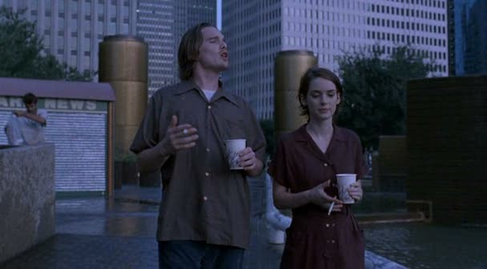 Appena usciti dall’università, i protagonisti cercano di trovare il loro posto in un universo in costante evoluzione, tra sogni infranti, relazioni complicate e disillusioni legate alla quotidianità. Una realtà da mastica e ingurgita che si fatica talvolta ad assaporare, una realtà che a tratti “morde” come suggerisce il titolo originale. La protagonista, Lelaina (Ryder), è una giovane aspirante regista che sogna di realizzare documentari, ma si ritrova a lavorare come assistente di produzione per un programma tv superficiale. Nel tentativo di immortalare le esperienze e le emozioni dei suoi amici, Lelaina utilizza la sua telecamera come uno strumento di introspezione e riflessione, registrando le loro storie e il loro vissuto. Accanto a lei, troviamo Troy (Hawke), il classico ribelle tormentato, disilluso e cinico, che non riesce a trovare un lavoro stabile e si nasconde dietro un atteggiamento distaccato e ironico. Poi Vickie (Garofalo), che lavora in un negozio di abbigliamento e vive con la costante ansia di non sapere dove la porterà il futuro. E infine Sammy (Zahn), il più tranquillo del gruppo, che cerca di fare i conti con la sua identità e le sue incertezze personali. Uno degli elementi distintivi del film è senza dubbio la sua colonna sonora, curata nei minimi dettagli e ricca di brani che rappresentano perfettamente l’epoca degli anni ‘90. Con pezzi iconici che spaziano dal rock al pop, la musica diventa parte integrante della narrazione, non solo come sottofondo alle vicende dei protagonisti, ma come vero e proprio riflesso delle loro emozioni e della cultura giovanile di quel periodo. Spicca “All I want is you” degli U2, tratto dall’album Rattle and Hum, che assorbe l’atmosfera degli anni ‘90 e il sentimento di una generazione in cerca di se stessa. La musica, che si intrecciava perfettamente con i fotogrammi, ha lasciato un’impronta indelebile nel cuore del pubblico, rendendo “Giovani, carini e disoccupati” non solo un film, ma una testimonianza. Il brano di Bono risuona con forza in una delle scene più intense e memorabili del film, avvolgendo l’atmosfera con una potenza emotiva che amplifica ogni sguardo, ogni gesto, ogni silenzio. Le note vibranti e la voce inconfondibile del leader degli U2 riescono a catturare l’essenza del momento, sottolineando la drammaticità delle emozioni vissute dai protagonisti. È come se la canzone stessa diventasse un personaggio a sé. C’è una scena madre in cui si ascolta il pezzo: la musica non è solo un sottofondo, ma un battito pulsante che accompagna la storia, ne definisce il ritmo e lascia un’impronta.
