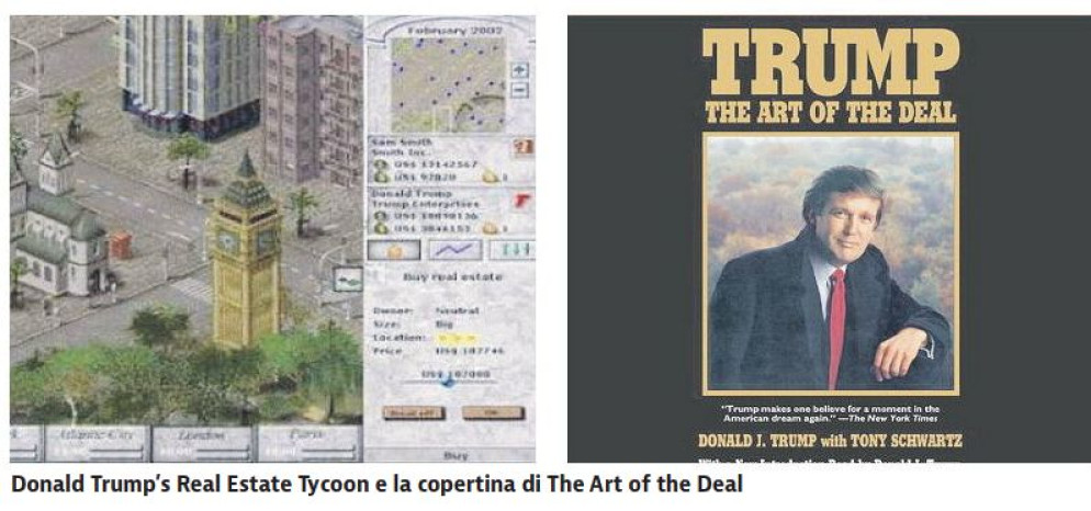 Anni prima della sua vittoria alle elezioni del 2016, quando la sua principale occupazione era il mercato immobiliare, venne realizzato un videogioco ufficiale sulla sua attività: Donald Trump’s Real Estate Tycoon, pubblicato nel 2002 su PC e poi riproposto su smartphone nel 2004. Nel gioco bisogna acquistare lotti di terreno, costruire edifici, affittare appartamenti e uffici e generare profitti sempre più elevati. È anche possibile sfidare Donald Trump stesso per arrivare a guadagnare, entro un determinato numero di anni, più di lui. Il gioco veniva presentato come un modo per vivere in prima persona quanto Trump descriveva nel suo famoso libro The Art of the Deal del 1987, in cui raccontava alcuni dei suoi migliori affari immobiliari.