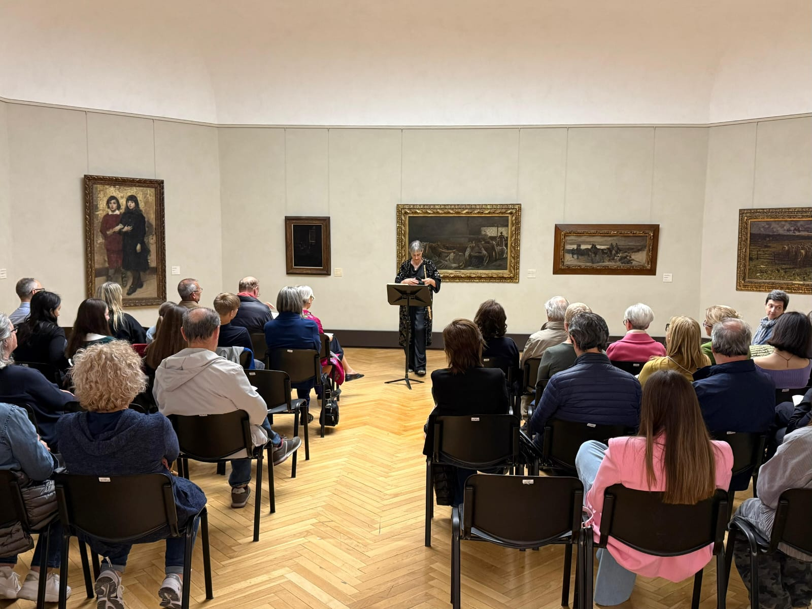 Si è aperto con grande partecipazione il Festival Galleria in Musica, nato dalla collaborazione tra il Conservatorio Nicolini e la Galleria d'Arte Moderna Ricci Oddi. La serata inaugurale del 10 aprile ha unito arte e musica in un dialogo suggestivo, introdotto dalla visita guidata ai capolavori della Galleria condotta dalla direttrice Lucia Pini. Protagonista del concerto è stata la flautista e docente del Nicolini Elena Cecconi con il recital “Il respiro che racconta”, un percorso tra epoche e linguaggi diversi, interpretato con sensibilità e grande controllo espressivo.