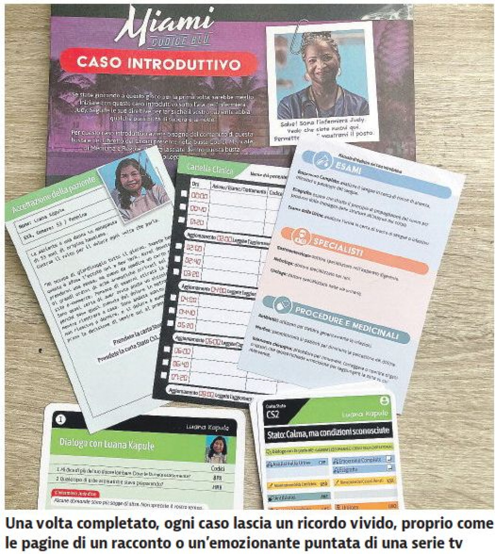 Mettendo insieme le informazioni raccolte nel corso della partita, è possibile arrivare a leggere una carta storia che rimanda all’unico elemento che le istruzioni chiedono di non estrarre dalla bu-sta: il foglio dell’epilogo. Qui non solo è riportata la felice conclusione della trama, ma anche un sistema di punteggio che premia il giocatore in base al suo operato e al fatto che, come un vero medico, abbia seguito tutti i giusti passaggi richiesti per formulare una diagnosi precisa. Ad esempio, portare il paziente in sala operatoria prima di aver eseguito tutte le analisi necessarie vi farà sì risolvere il caso, ma vi impedirà di ottenere il massimo punteggio.