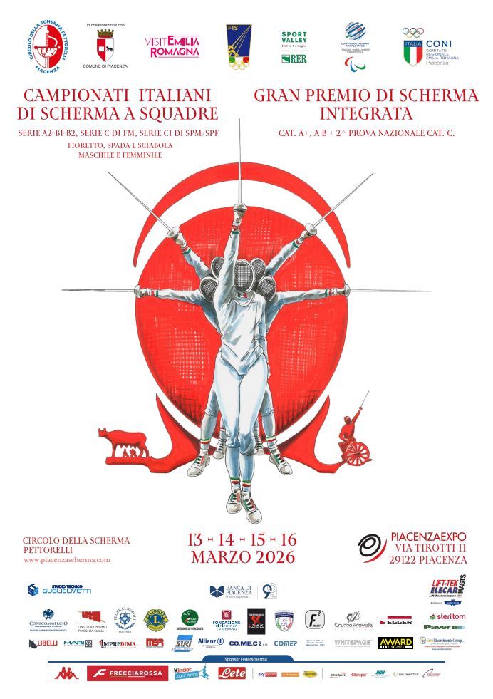 Piacenza sarà di nuovo la capitale della scherma italiana dal 13 al 16 marzo, quando il quartiere fieristico di Piacenza Expo ospiterà la quinta edizione dei campionati italiani dalla Serie A2 alla B2 maschile e femminile di spada, fioretto e sciabola, della Serie C di fioretto maschile e della C1 di spada maschile e femminile. In più, negli stessi giorni ci saranno anche il Gran premio di scherma integrata per le categorie A+, A e B e la seconda prova nazionale di categoria C.