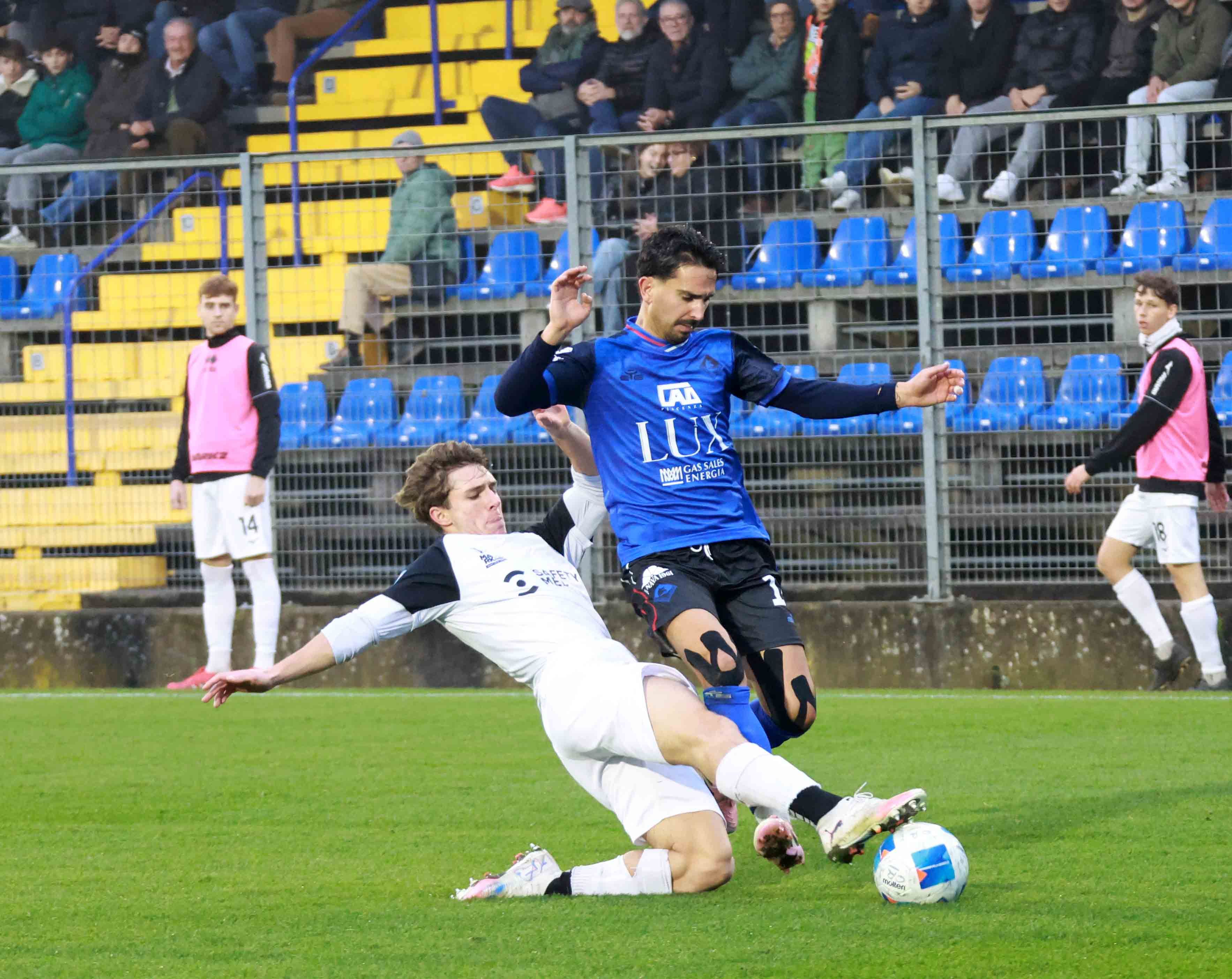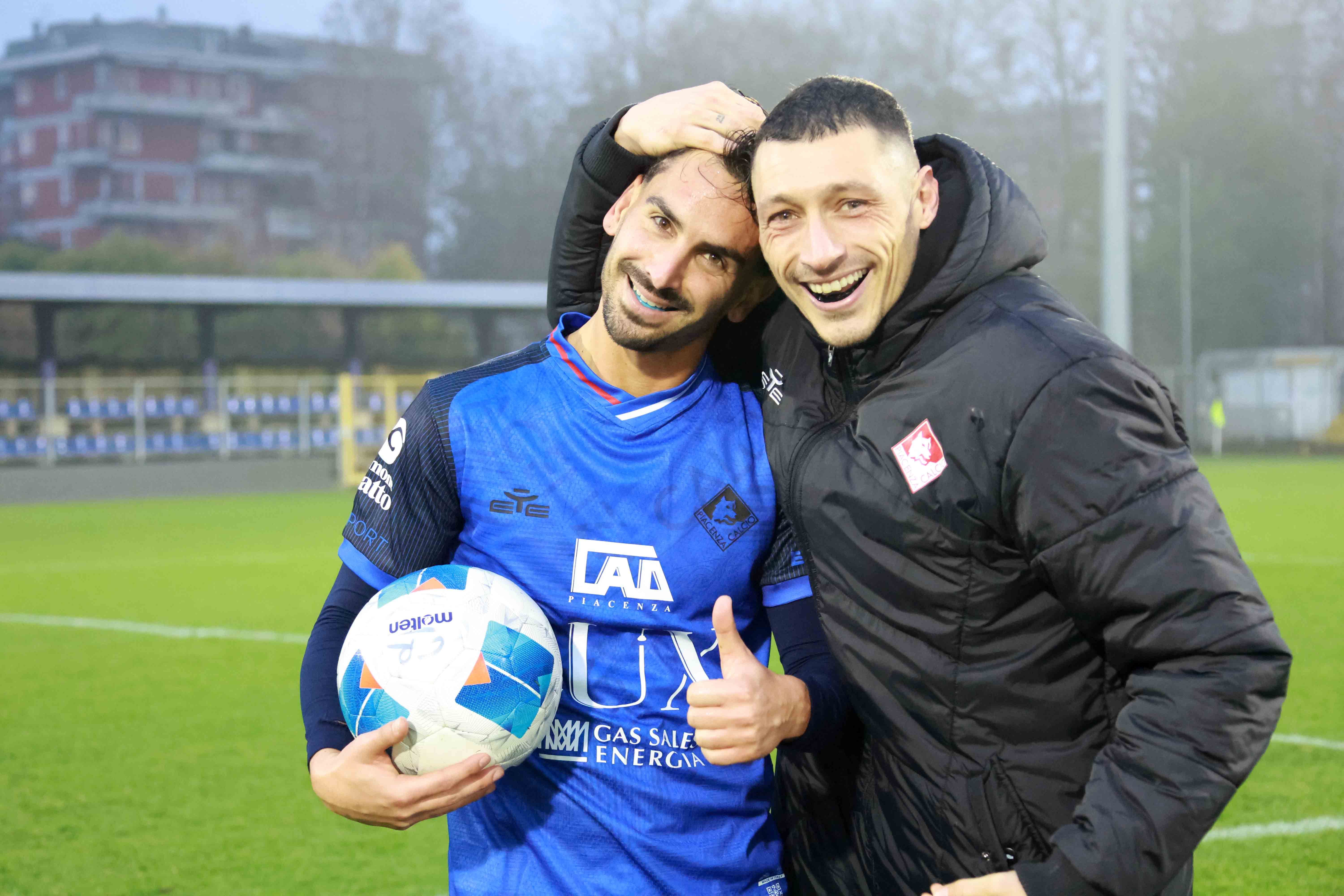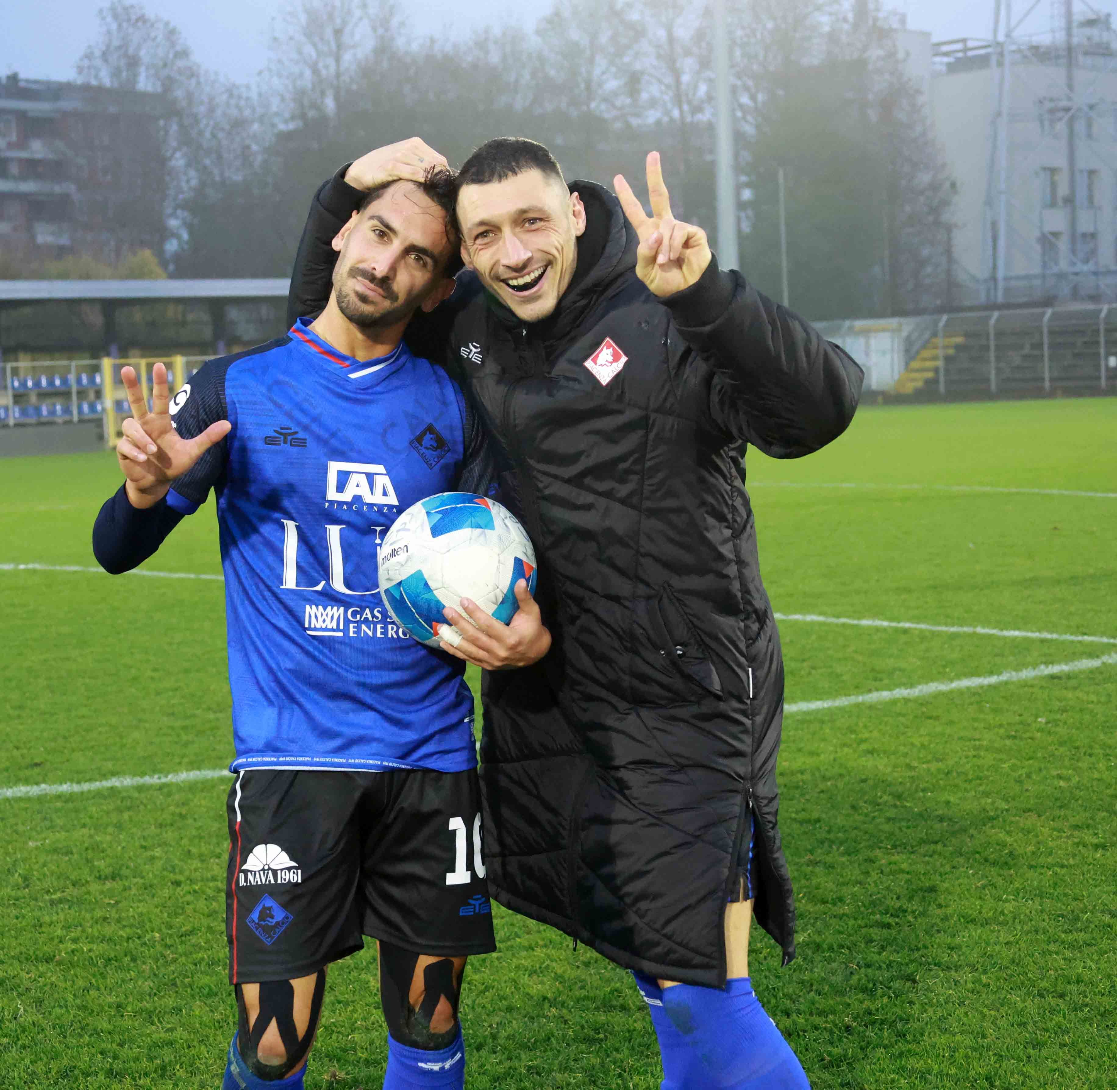 L’approccio feroce richiesto da mister Franzini dura solo qualche minuto, giusto il tempo dell’occasione di Mustacchio, che spara alto sul corner di D’Agostino. All’8’, il Piace si fa cogliere impreparato sul primo corner di casa: Erman risolve la mischia e trova l’1-0 Crema con un tiro deviato. Proteste biancorosse perché capitan Silva era rimasto a terra. Lamentele piacentine anche un paio di minuti dopo, quando dopo il brutto fallo di Vailati su Lordkipanidze, l’arbitro opta per il cartellino giallo e non per l’espulsione.Il Piace torna alla carica ancora più convinto e trova il pari al 15’: Mustacchio addomestica un lancio lungo e serve la sponda per D’Agostino in area, che trova l’1-1 con un piazzato mancino che si infila all’angolino. Ospiti ancora pericolosi con l’assolo di Mustacchio sulla sinistra, cross per Lordkipanidze che sfiora il vantaggio con un colpo di testa che si spegne di poco fuori. Partita accesa anche nella seconda parte del primo tempo: il Piacenza controlla il possesso e cerca spazi che difficilmente trova.Inizio ripresa sulla stessa linea e, come nel primo tempo, il Crema colpisce alla prima vera chance: al 55’ è la punizione dalla sinistra di Mozzanica ad infilarsi piano piano in rete sul secondo palo. Poco reattiva la difesa, non impeccabile il portiere Ribero. Nei primi 15’ della ripresa solo un paio di tiri velleitari di Lordkipanidze e D’Agostino.Sono i cambi (Taugourdeau e Ciuffo) a dare nuova linfa: il regista francese innesca l’azione del 2-2, rifinita da una gran giocata di Lordkipanidze e dall’inserimento con cross dalla destra di Ciuffo, pallone appoggiato in rete da D’Agostino di testa per la doppietta. “Lord” sfiora il gol in girata, il Piace spinge come mai prima nella partita. La squadra di Franzini rischia solo in contropiede, ma non trova la stoccata decisiva. Franzini mette ancora mano alla panchina (Mazzaglia, Bianchetti e Pizzi) e viene ripagato dal solito, immenso D’Agostino. Tripletta del numero 10, che segna ancora di testa sul nuovo cross di Ciuffo. Ottavo gol nelle ultime cinque gare, si inchina anche il Crema (l'ex bomber Recino salutato e omaggiato dai tifosi biancorossi) e il Piace dorme in vetta. Dopo la sosta, il 4 gennaio 2026, big match in casa del Desenzano.