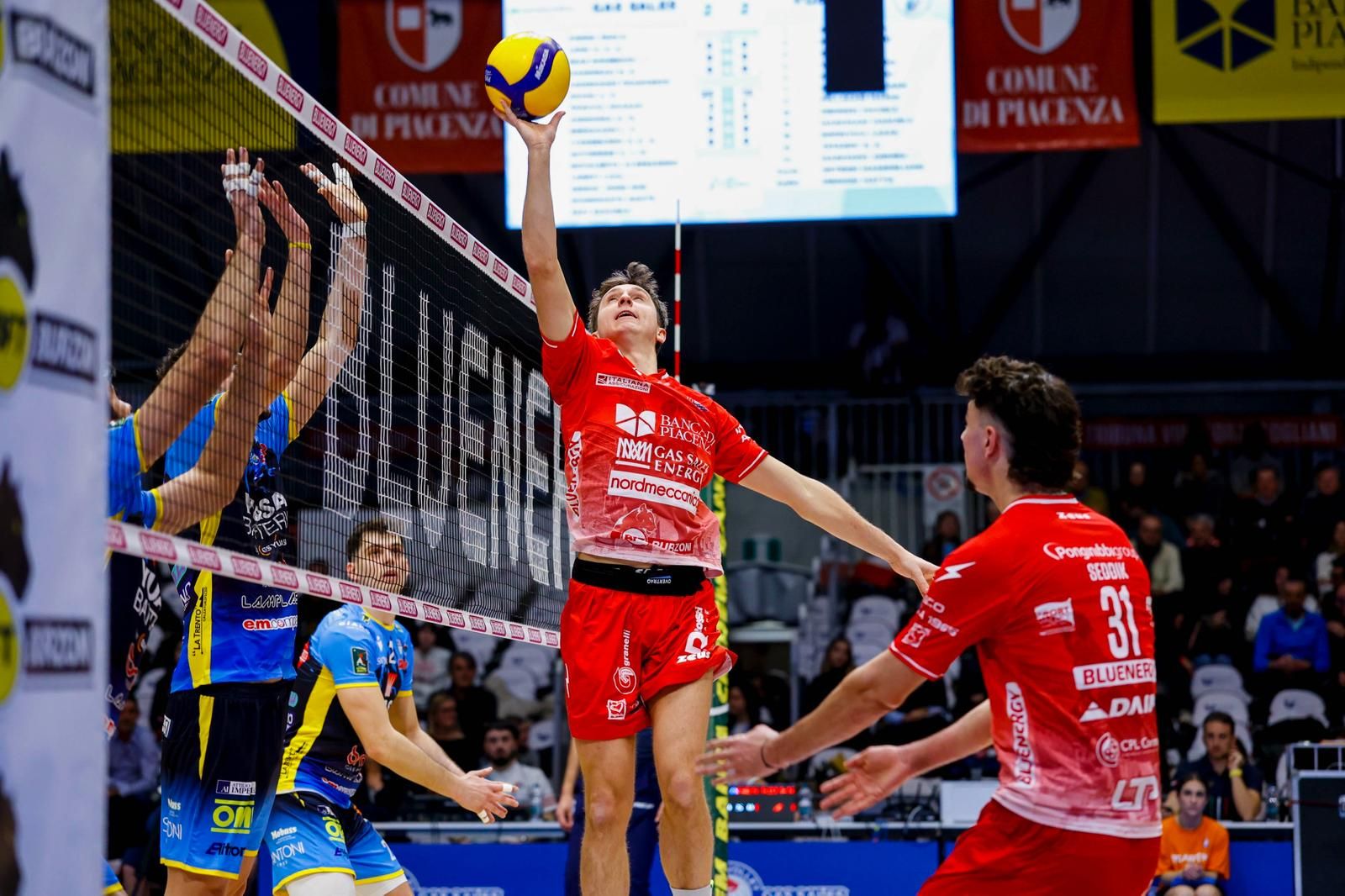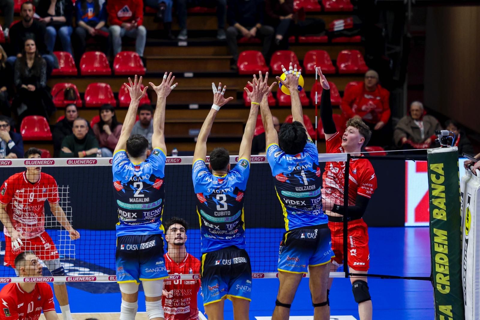 Gas Sales Bluenergy Volley Piacenza: Bovolenta 24, Bergmann 15, Comparoni 3, Porro 3, Mandiraci 15, Seddik 3, Pace (L), Loreti (L), Iyegbekedo 3, Andringa, Leon. Ne: Simon, Travica, Gutierrez. All. Boninfante.
