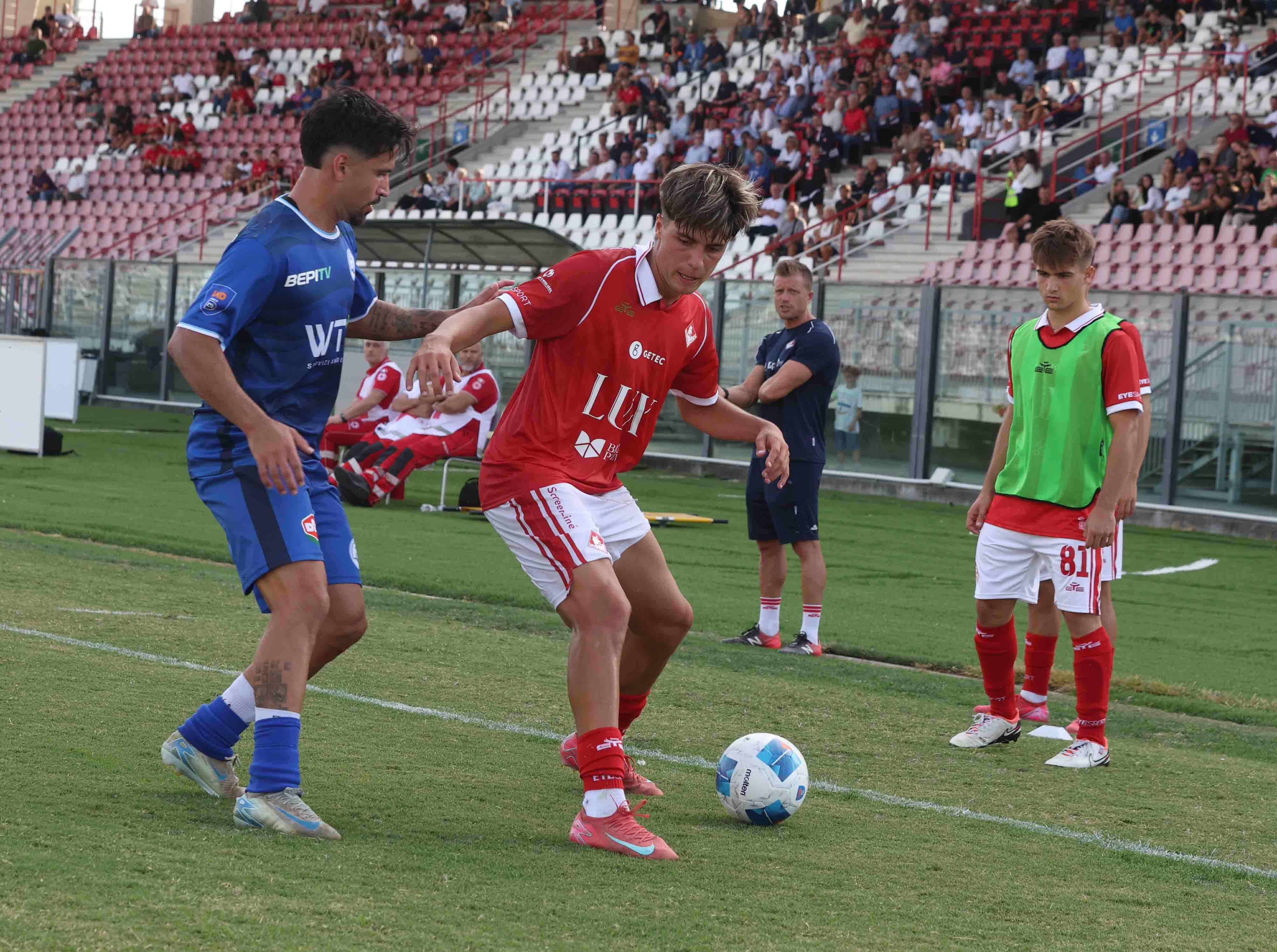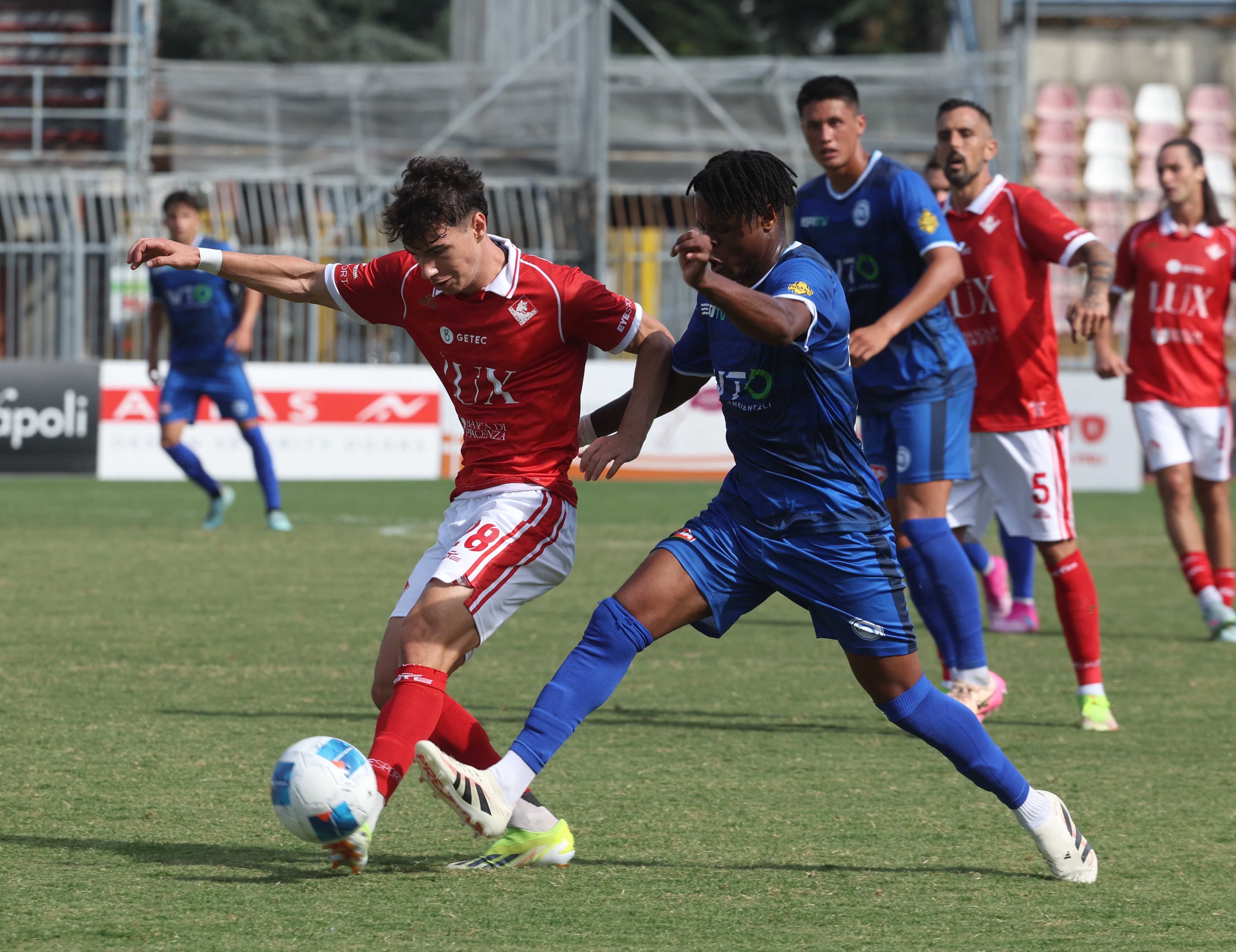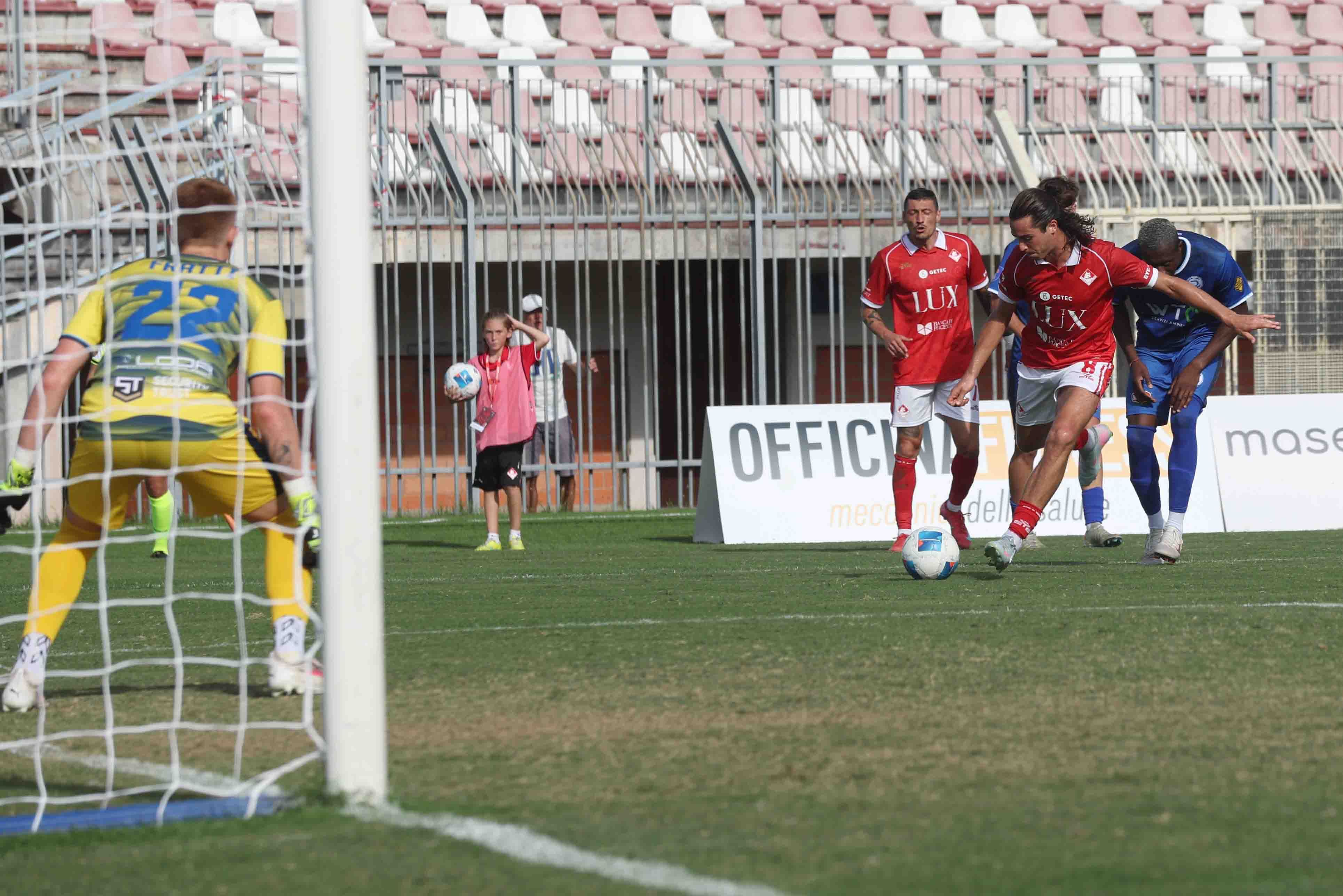 La partita sembra inchiodata sullo 0-0, ma la squadra di Franzini trova il vantaggio al 25’ con l’aiuto degli avversari: il mancino di D’Agostino dal limite prima sbatte sulla schiena di Parlato e poi il rinvio maldestro del terzino Giorgi si infila nell’angolino per l’autogol.