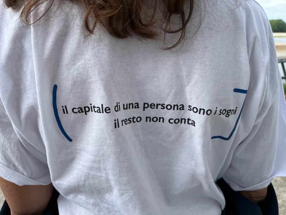 Sul retro della maglia hanno scritto “Il capitale di una persona sono i sogni, il resto non conta”. “È una frase a cui teniamo molto” ammette Giovanna Casali, ex socia della società canottieri Nino Bixio e organizzatrice insieme agli altri di “Vogaposse”, la regata che vede impegnati 21 appassionati sportivi della Canottieri Milano con l’obiettivo di remare dai Navigli milanesi fino a Venezia, percorrendo il Po.