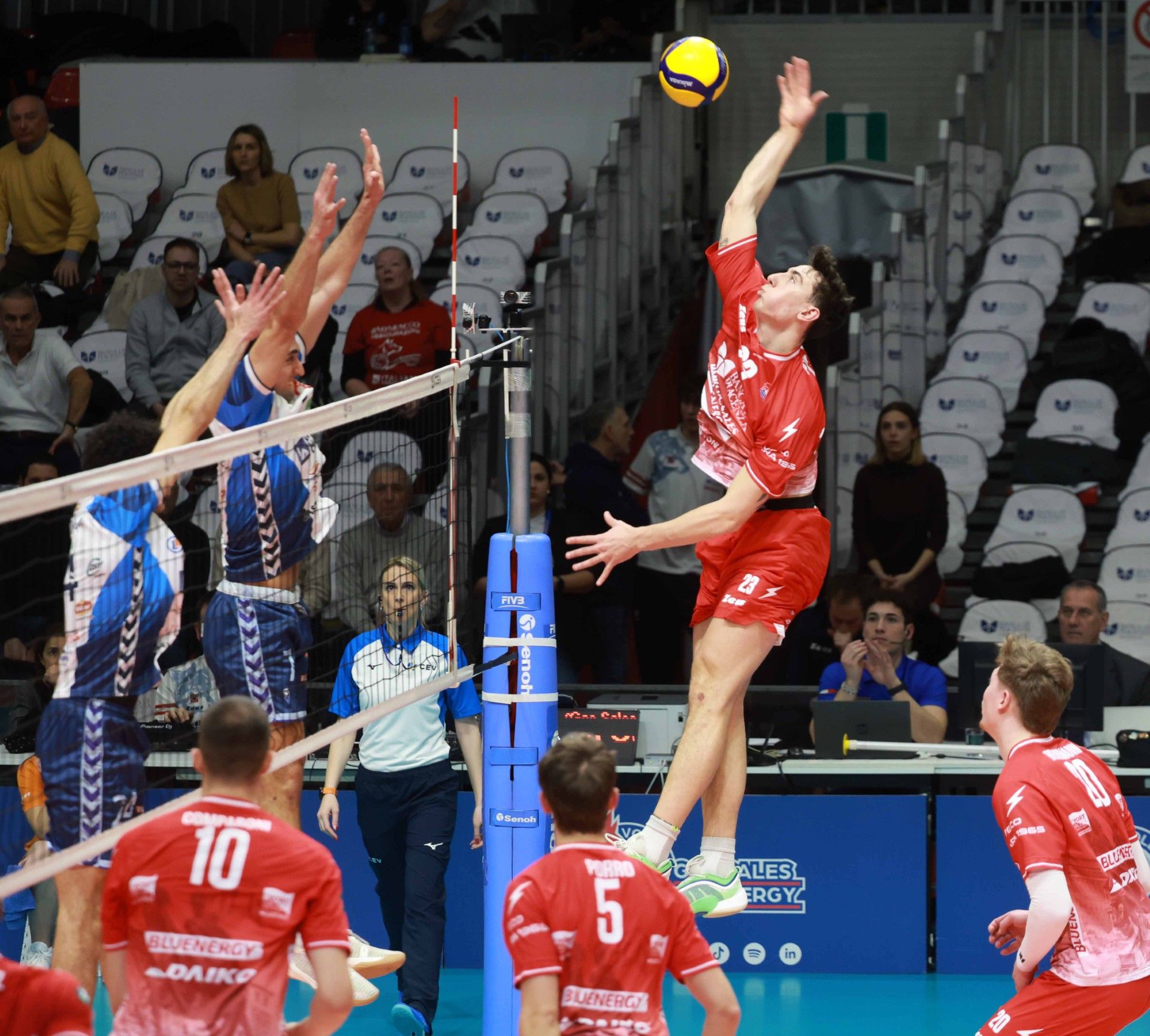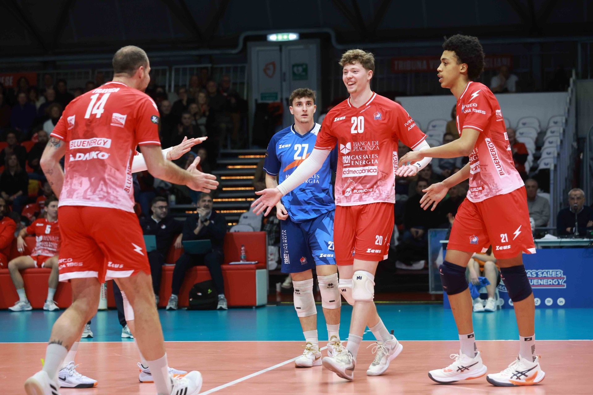 Dopo due parziali chiusi in meno di un’ora e un terzo set ceduto ai vantaggi, Piacenza si impone 3-1 negli ottavi di finale di Cev Cup davanti al pubblico del PalabancaSport