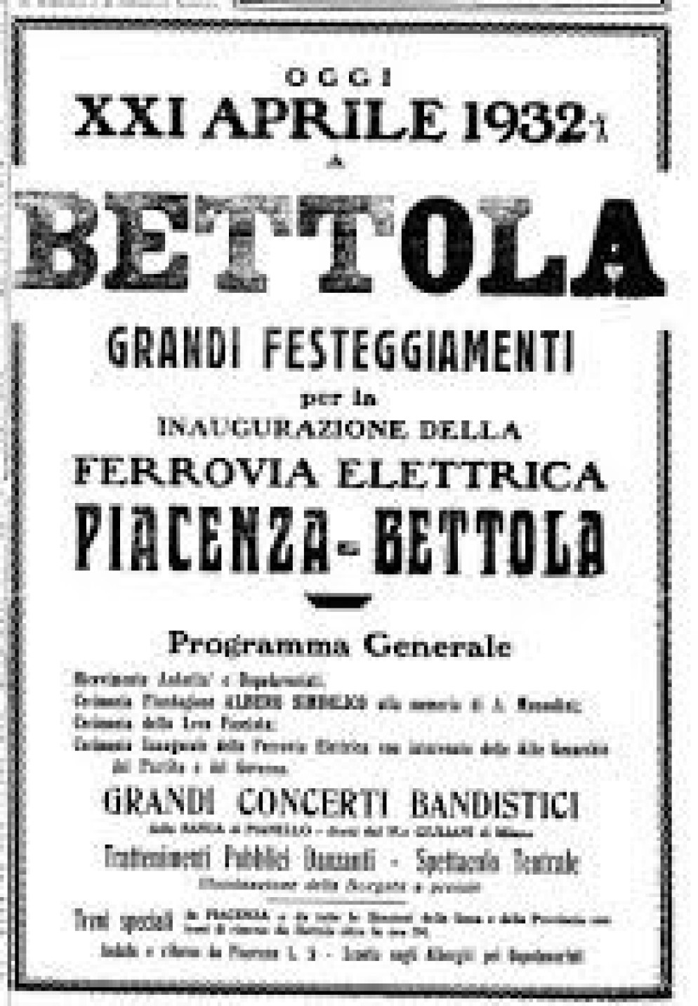 Novant’anni dall’inaugurazione della Littorina: Bettola pensa a una mostra “da passeggio”. Il 21 aprile del 1932, infatti, veniva inaugurata la famosa “Littorina”: la ferrovia elettrica che da Piacenza arrivava fino al comune della Val Nure; poi dismessa negli anni sessanta a seguito dell’affermazione del trasporto su gomma.