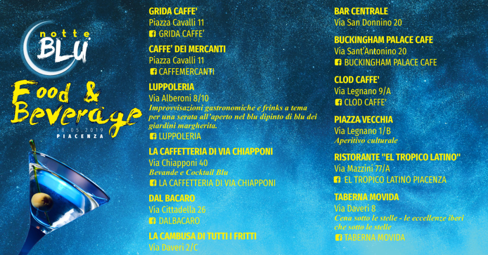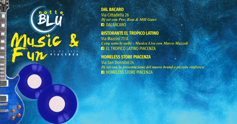 Musica, shopping, dj set, aperitivi a tema ma anche tanta arte e cultura. La Notte Blu, giunta quest’anno alla sua decima edizione, ha in serbo tante sorprese per i piacentini, con l’attesissimo appuntamento (che darà il via alla stagione di eventi primaverile estiva della nostra città) in programma sabato 18 maggio dalle 19 a mezzanotte. Tra le novità di quest’anno, presentate questa mattina in Comune, un’esibizione di tango in piazza Cavalli, la mostra Volumnia in Sant’Agostino e un’esibizione di artisti circensi in piazza Mercanti.