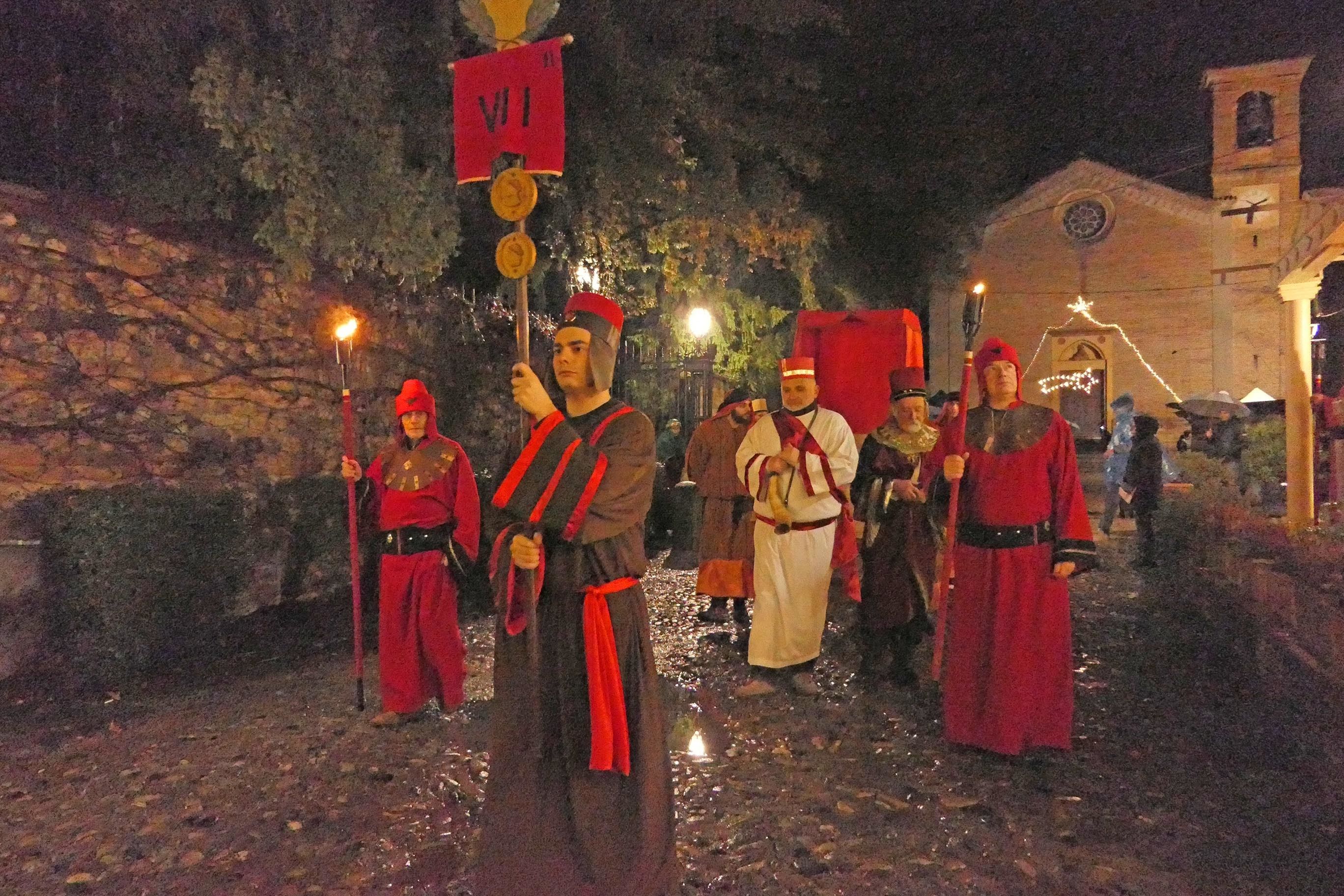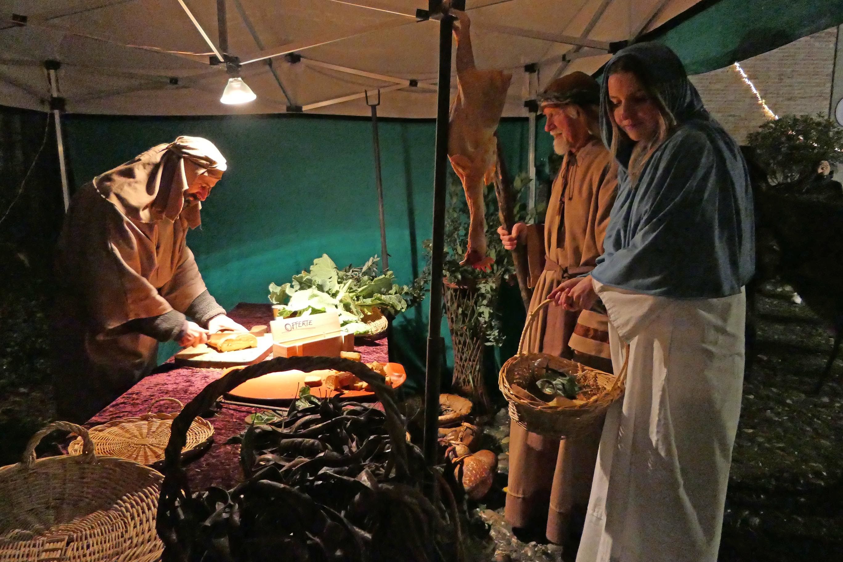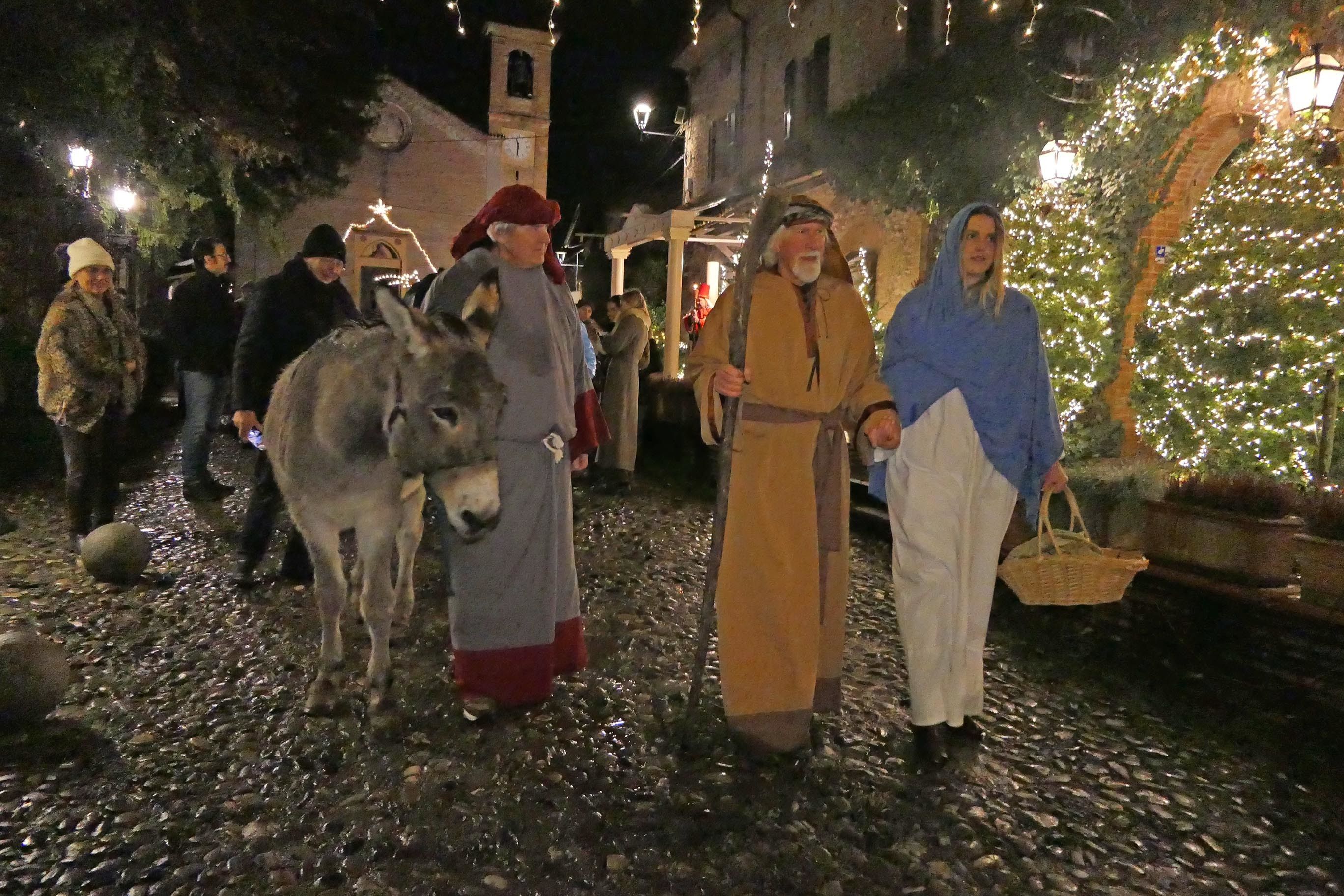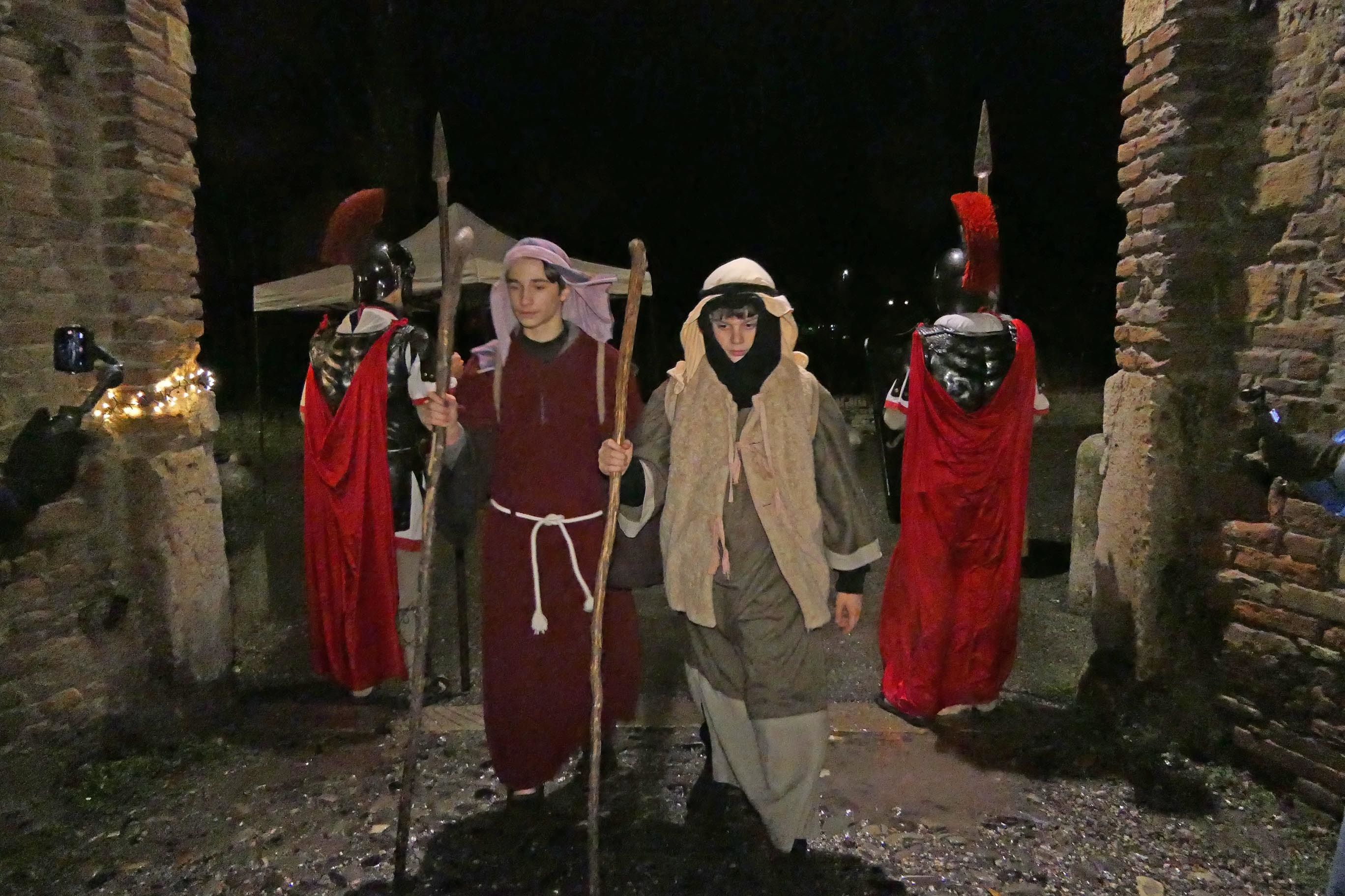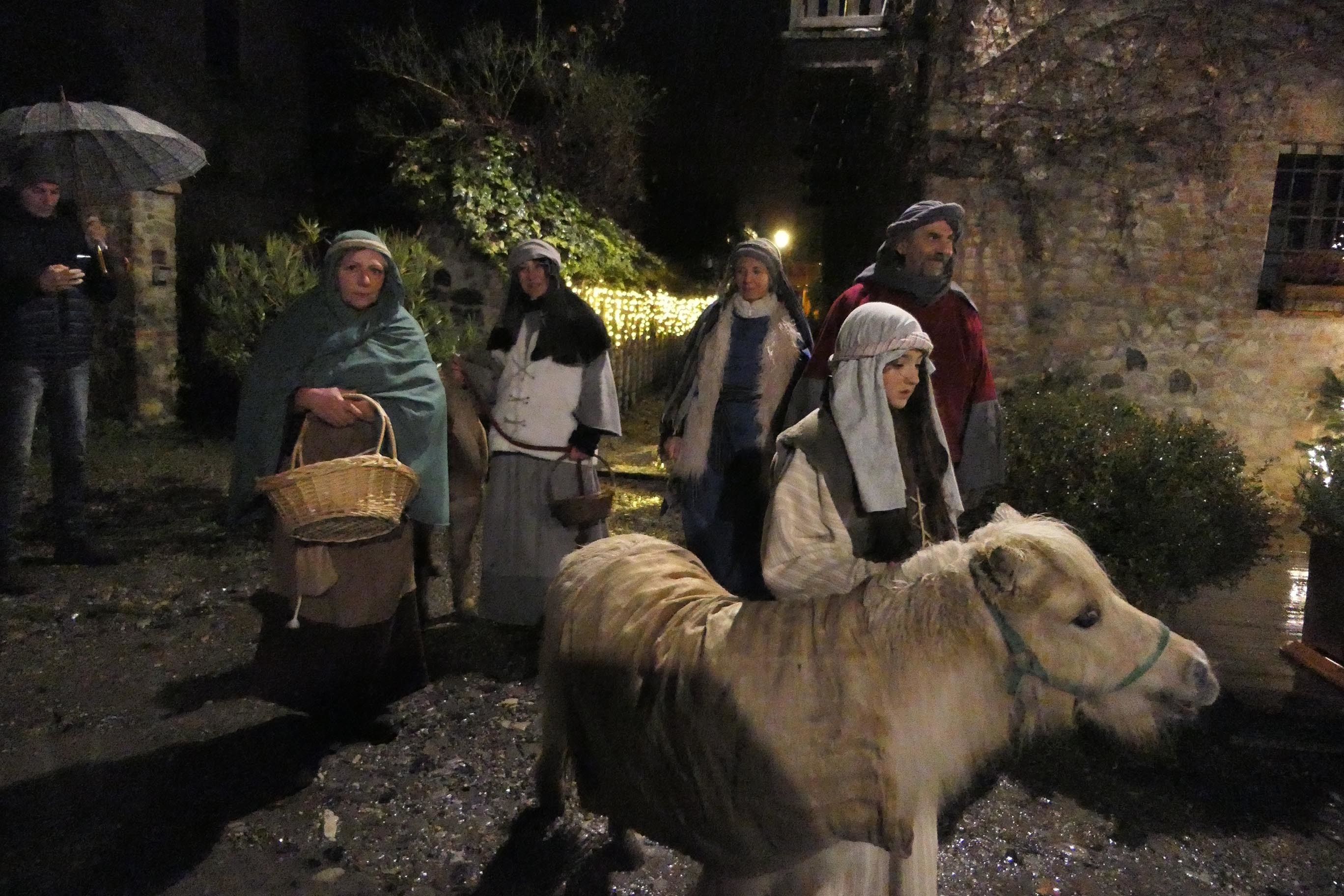 Sembrava di essere tornati indietro di 2025 anni, alla nascita del bambino Gesù. Rivalta come Betlemme, popolata solo di pastori, falconieri, speziali, soldati palestinesi e legionari romani, commercianti di tessuti e funzionari del censimento, Erode e la sua corte di dignitari. Il presepe vivente è andato in scena come tradizione vuole la vigilia di Natale nel borgo di Rivalta. Tra il freddo pungente e una pioggerellina scozzese che non concedeva tregua. Condizioni meteo che hanno tenuto a casa praticamente ogni potenziale visitatore. Non loro. Non i centoventi figuranti del presepe vivente che - fotografati e filmati dal regista Roberto Dassoni - hanno messo in scena i vari quadri della Natività come sempre con perizia, passione e impegno. In un'atmosfera quasi da set del film di Zeffirelli: il kolossal Gesù di Nazareth. Rivalta e il suo presepe sotto la pioggia andranno in onda il 6 gennaio (alle ore 20,30) su Telelibertà al canale 76 e su www. liberta.it. La regìa è appunto di Roberto Dassoni, testi e voce di Barbara Tondini, le musiche di Marguerite e Lindi Birri. A mezzanotte chiesa piena per la messa di Natale celebrata da monsignor Giuseppe Busani.