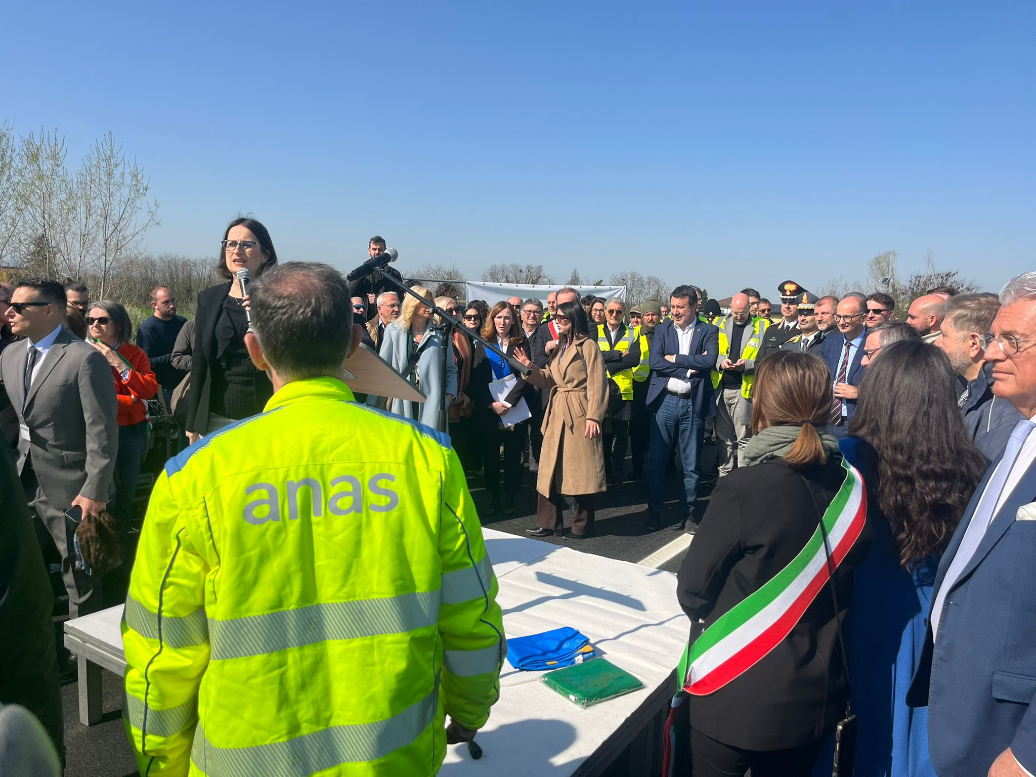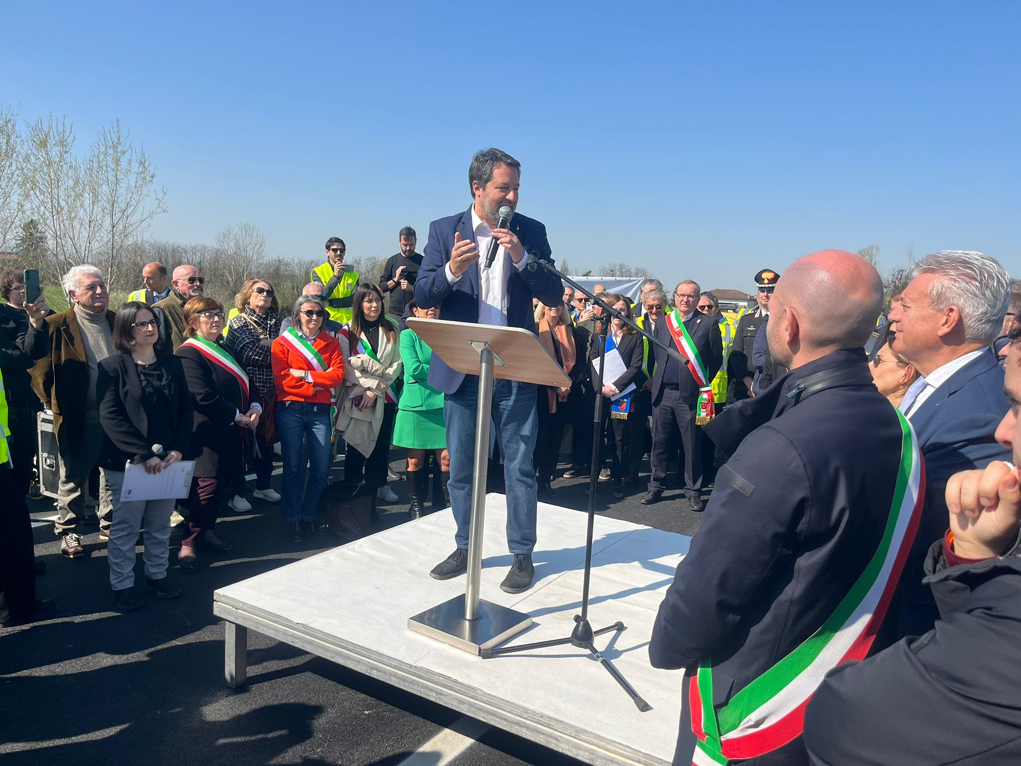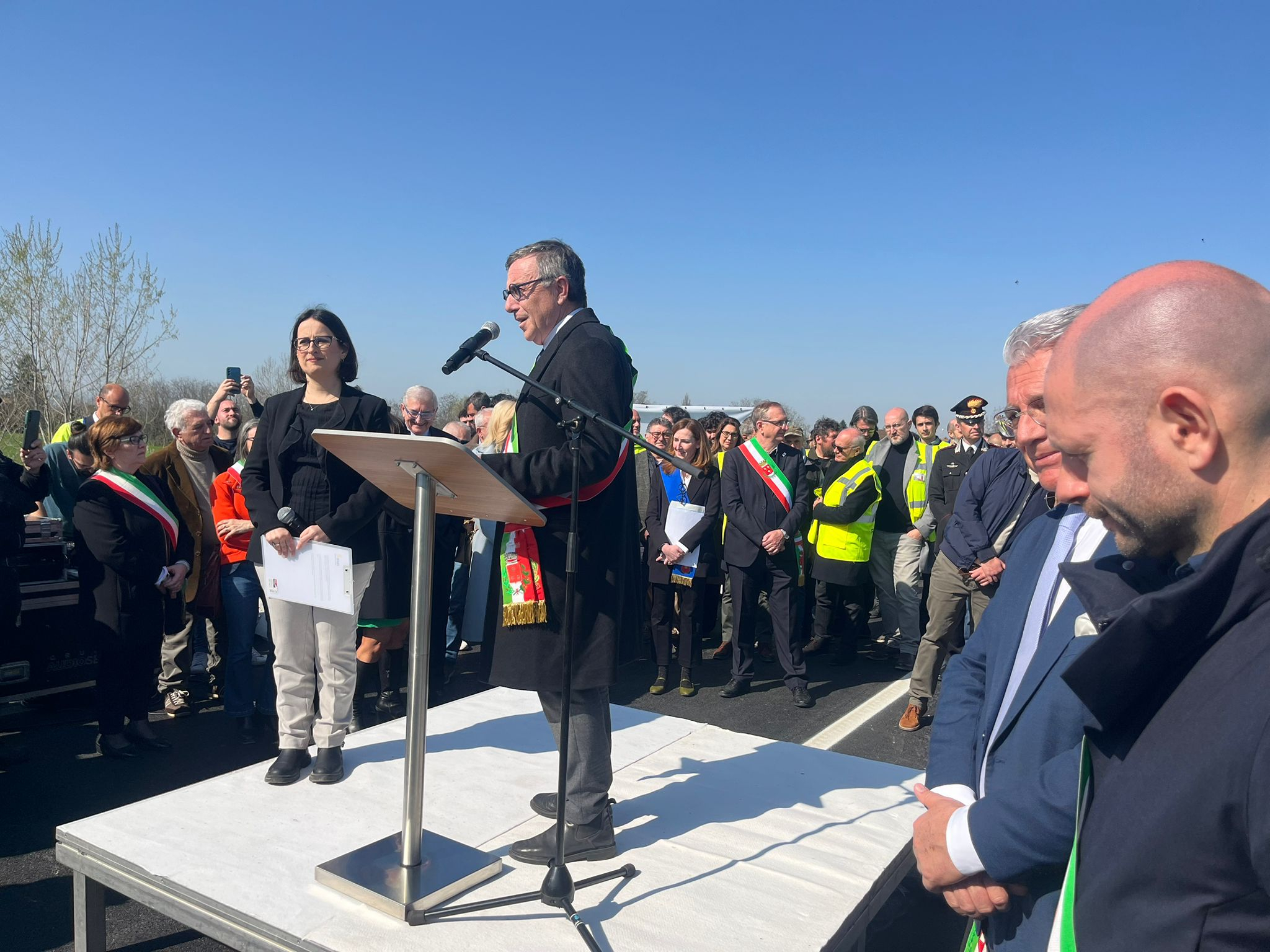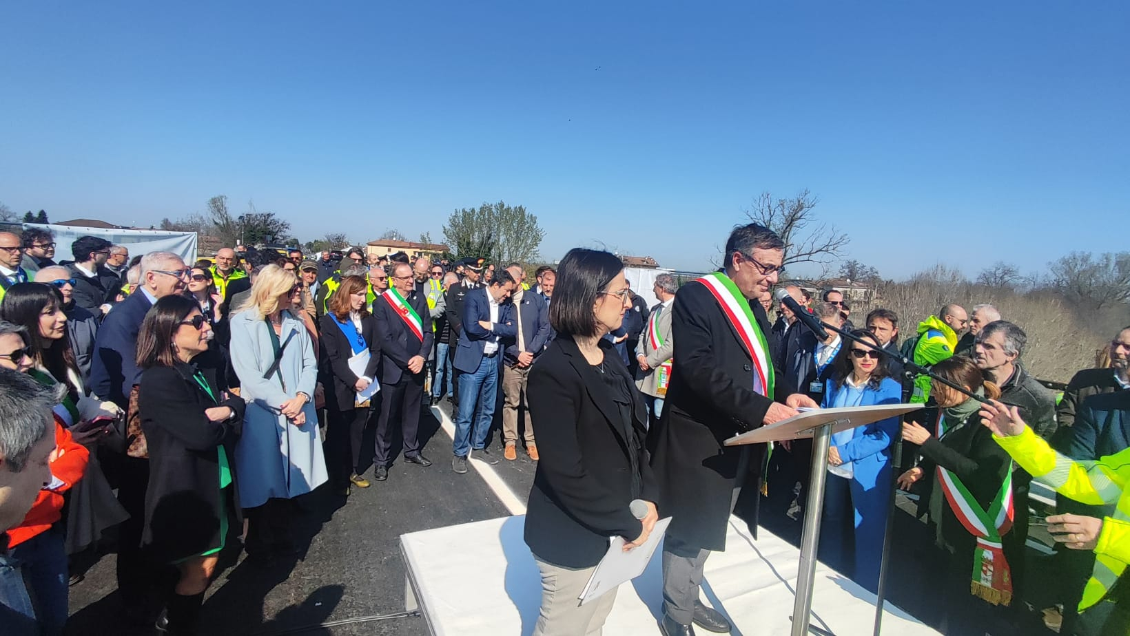 Presenti alla riapertura, oltre al vicepresidente del Consiglio e Ministro delle Infrastrutture e dei Trasporti Matteo Salvini, l'Assessora all'Ambiente, Programmazione territoriale, Mobilità Trasporti della Regione Emilia-Romagna Irene Priolo, il Commissario prefettizio del Comune di Pontenure, Attilio Ubaldi, e il Responsabile Anas Emilia-Romagna Massimiliano Campanella.