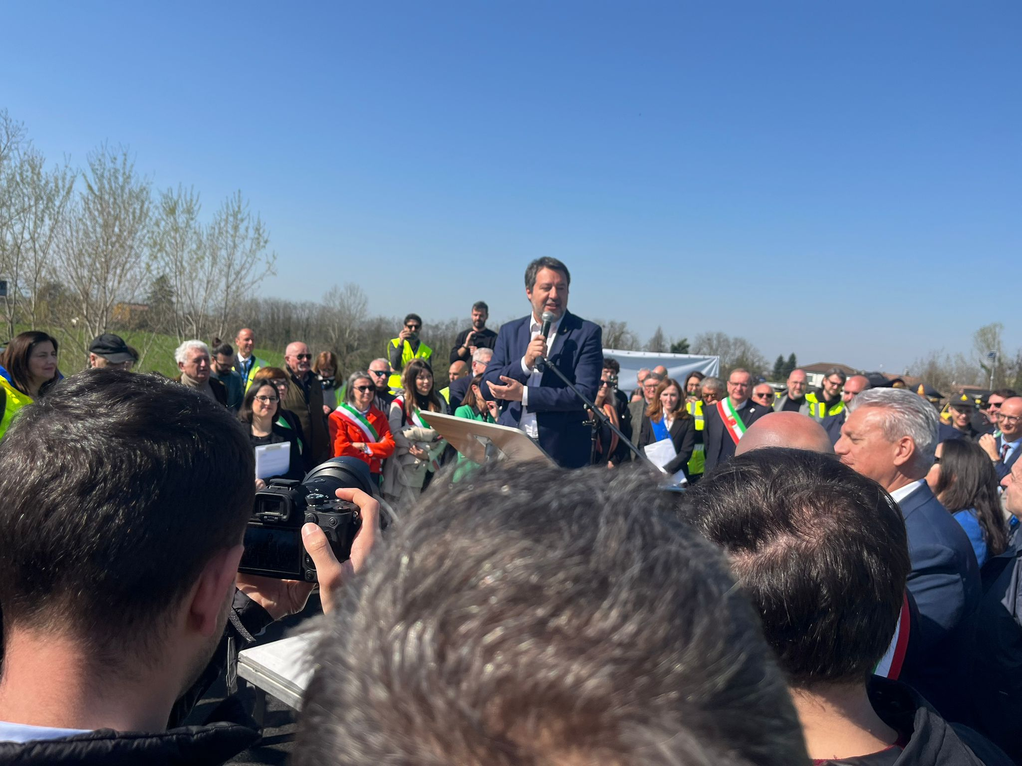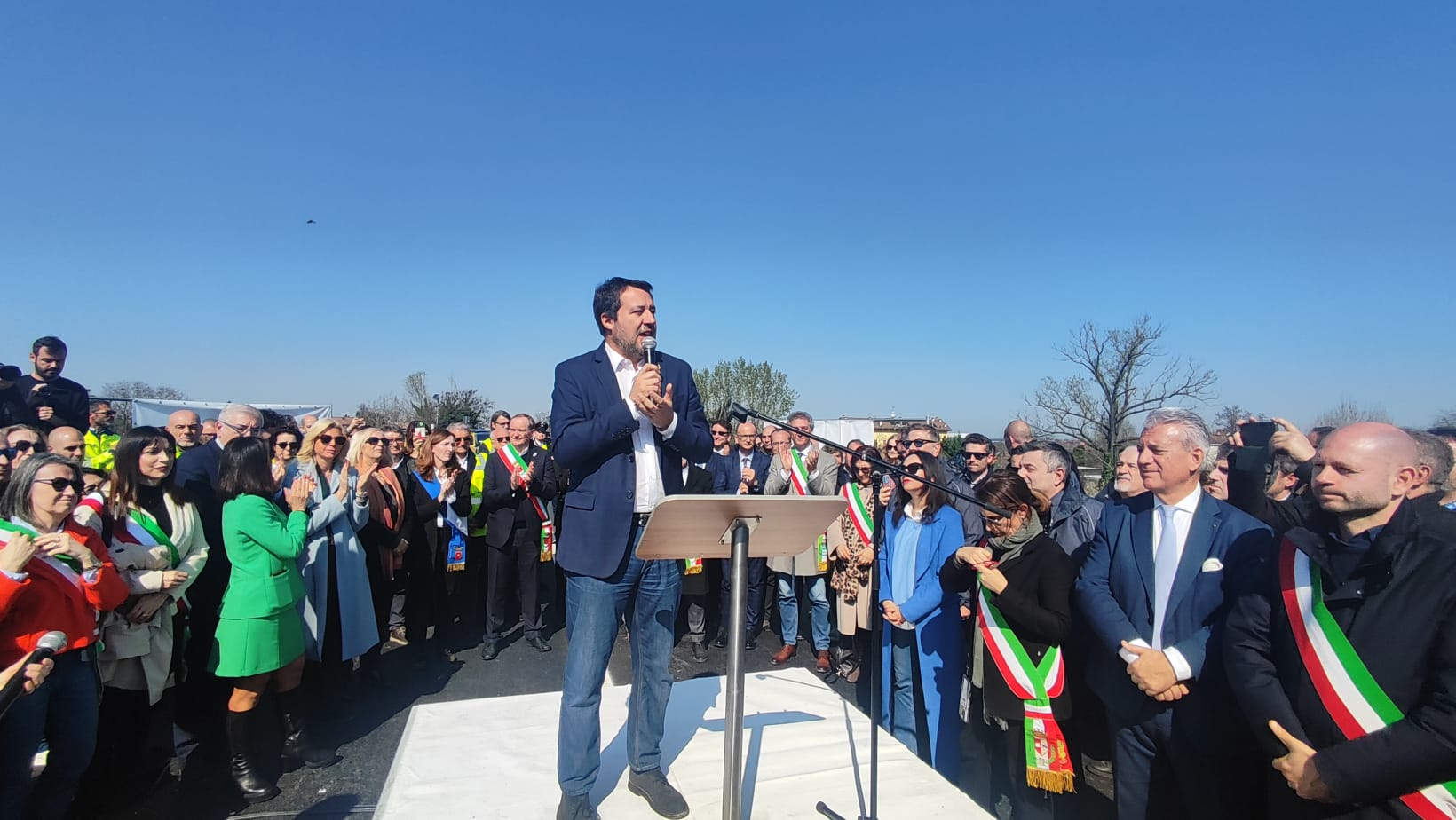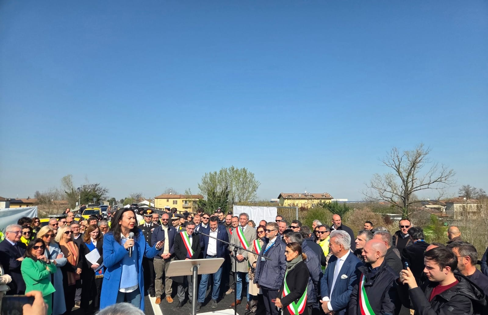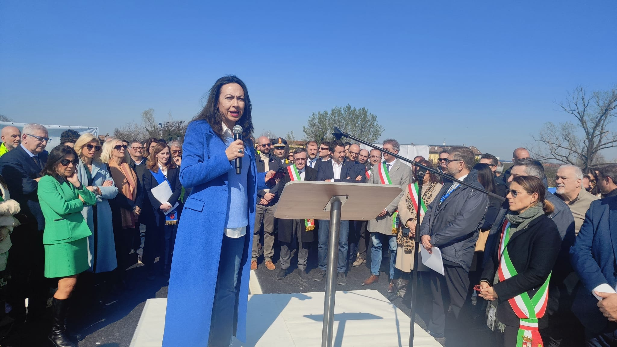 Presenti alla riapertura, oltre al vicepresidente del Consiglio e Ministro delle Infrastrutture e dei Trasporti Matteo Salvini, l'Assessora all'Ambiente, Programmazione territoriale, Mobilità Trasporti della Regione Emilia-Romagna Irene Priolo, il Commissario prefettizio del Comune di Pontenure, Attilio Ubaldi, e il Responsabile Anas Emilia-Romagna Massimiliano Campanella.