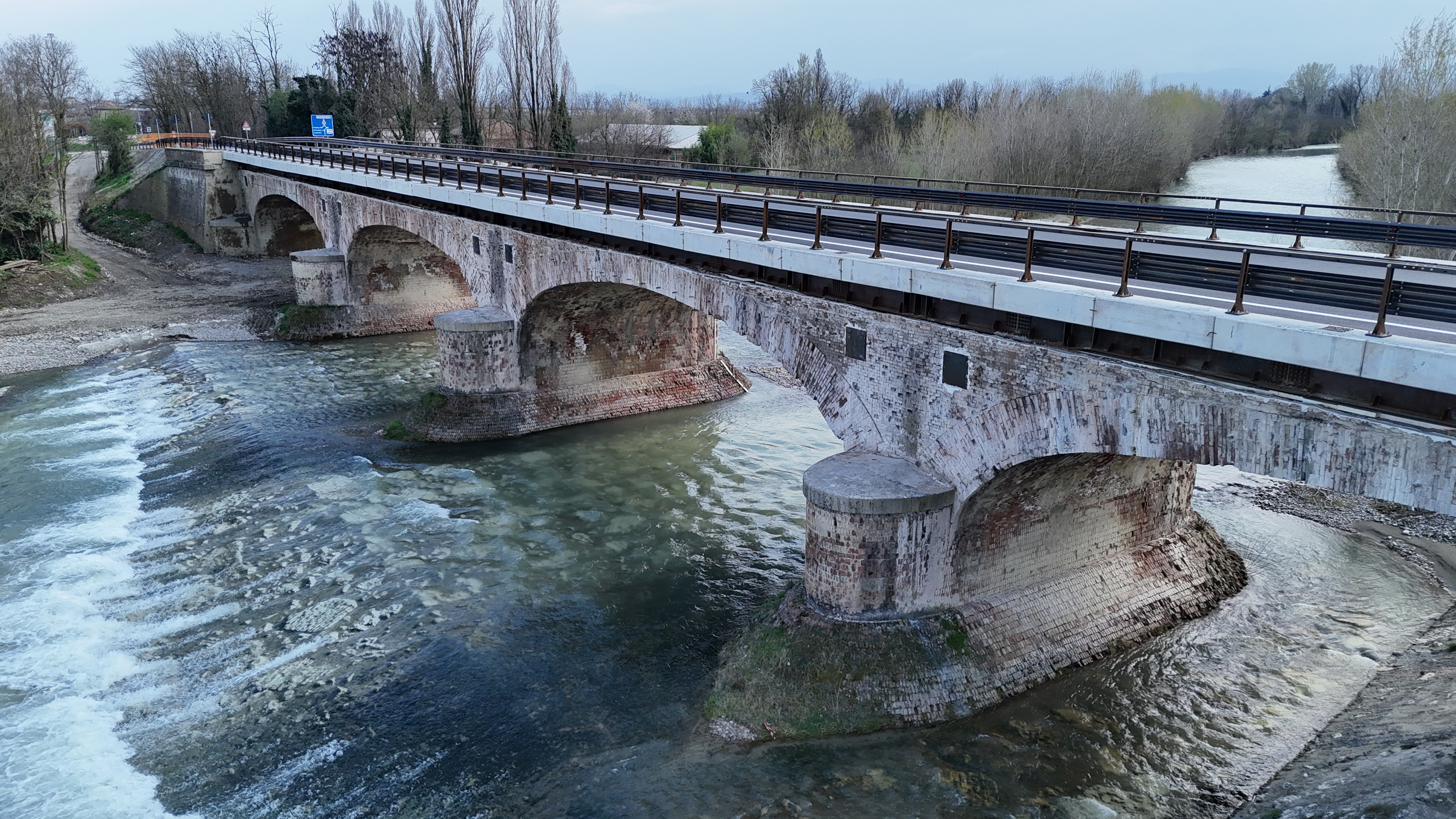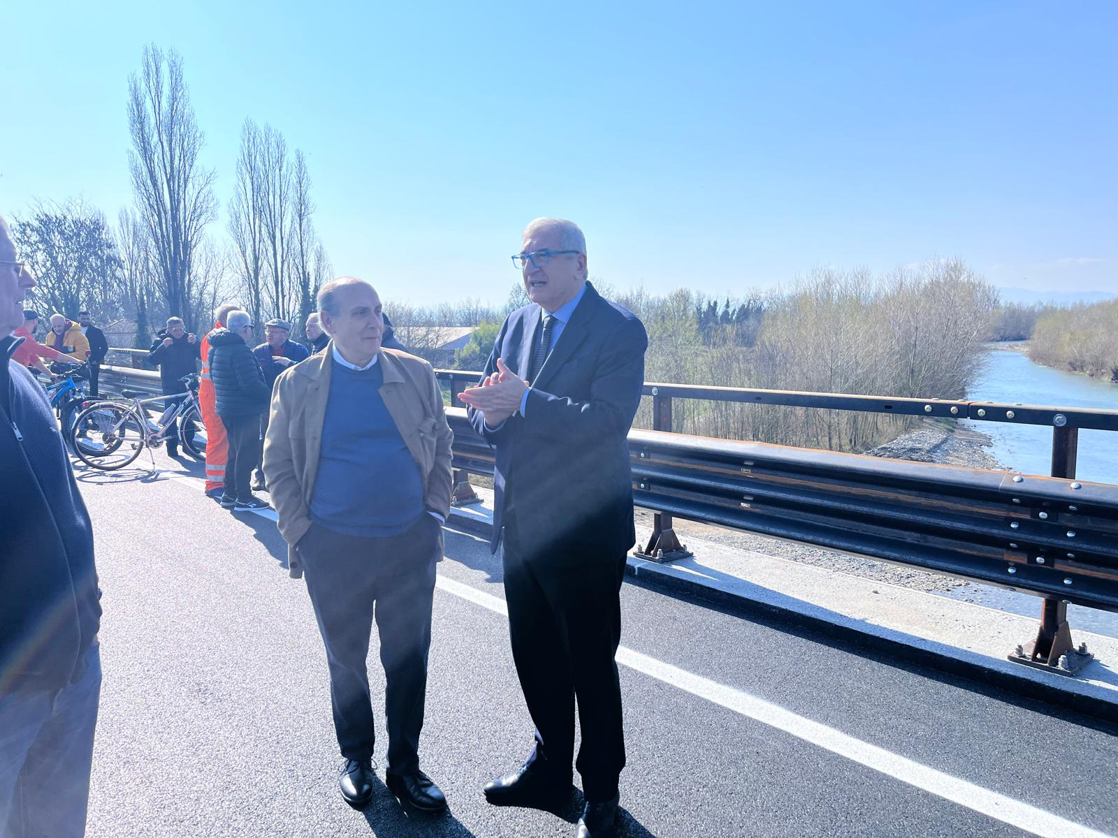 Il ponte originario, costruito nel 1838, è composto da quattro pile in alveo e cinque arcate in muratura. Negli anni ’70 la struttura era stata integrata con un cordolo in calcestruzzo armato a sbalzo su entrambi i lati, oggi rimosso dall’intervento. La piattaforma stradale è stata adeguata agli standard della categoria extraurbana secondaria (C2) con nuovi cordoli laterali, barriere di sicurezza e il miglioramento del sistema di smaltimento delle acque. Proseguirà ora l’ultima fase dei lavori per il restauro conservativo della struttura storica, svolti senza interferenze con la circolazione stradale.