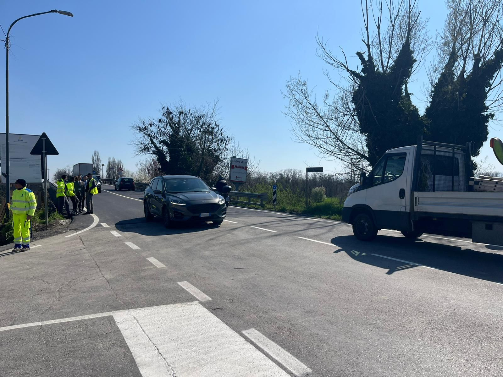 Dietro i mezzi Anas e della polizia locale, i primi ad attraversare il nuovo ponte sono stati giornalisti e tecnici di Telelibertà in auto con Roberto Marenghi, pensionato residente nella zona
