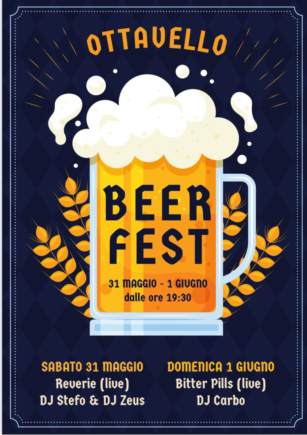 Venerdì 31 maggio e domenica 1° giugno, a partire dalle ore 19.30, a Ottavello arriva la Beer Fest: due serate di birra e musica per tutti!