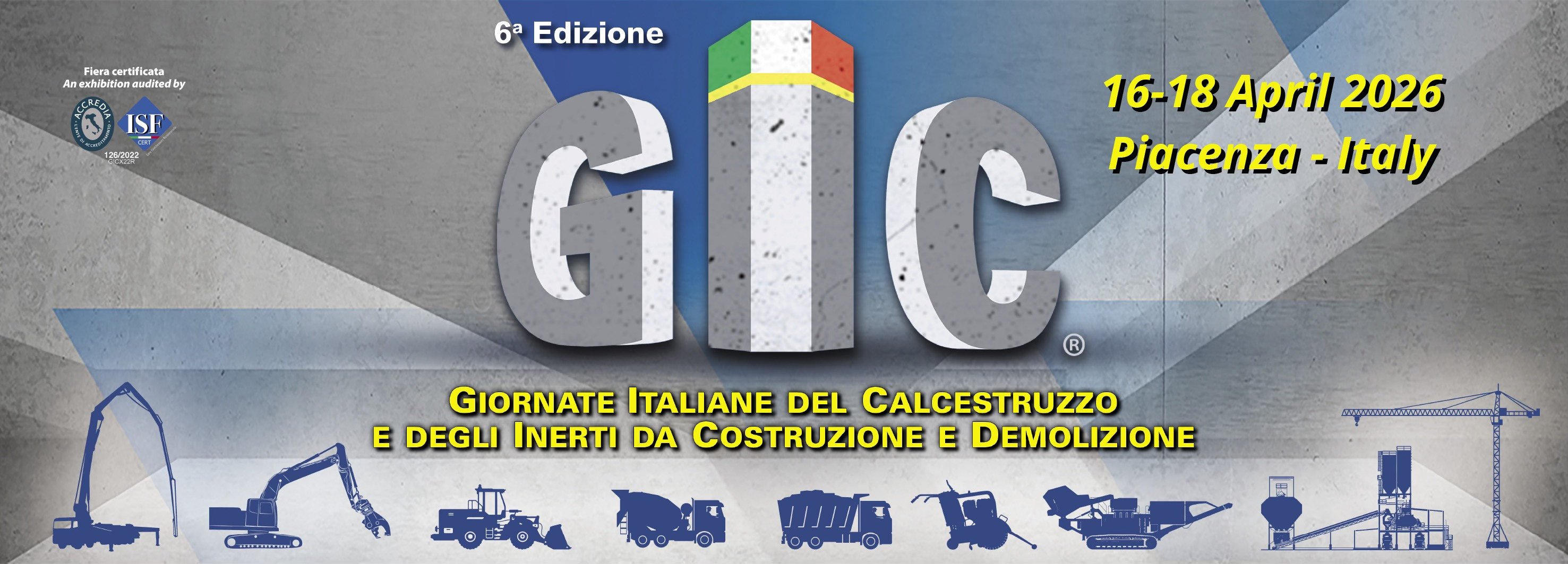 Dal 16 al 18 aprile 2026, a Piacenza Expo si svolge la sesta edizione del GIC – Giornate Italiane del Calcestruzzo e degli Inerti da Costruzione e Demolizione (Italian Concrete Days).