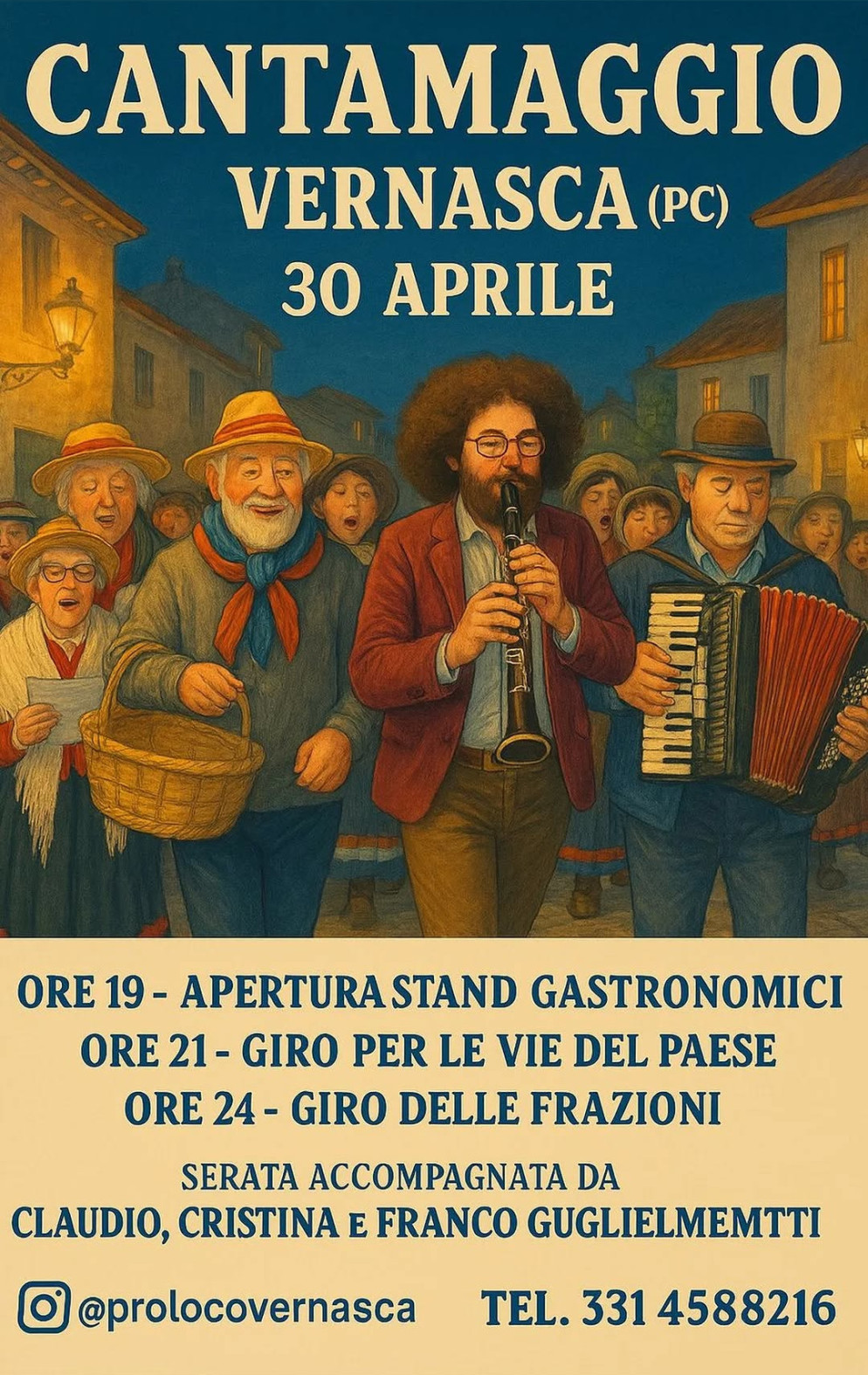 A partire dalla mezzanotte, il giro proseguirà nelle frazioni in compagnia di Cristina, Claudio e Franco Giglielmetti.