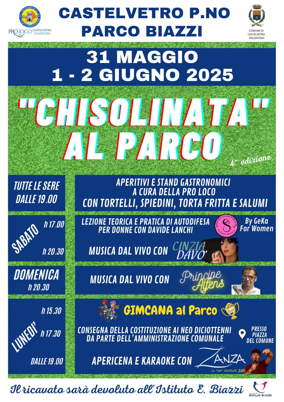 Dal 31 maggio al 2 giugno, torna a Castelvetro Piacentino la Chisolinata al Parco, tre giorni di allegria e buon cibo nel rinnovato Parco Biazzi.