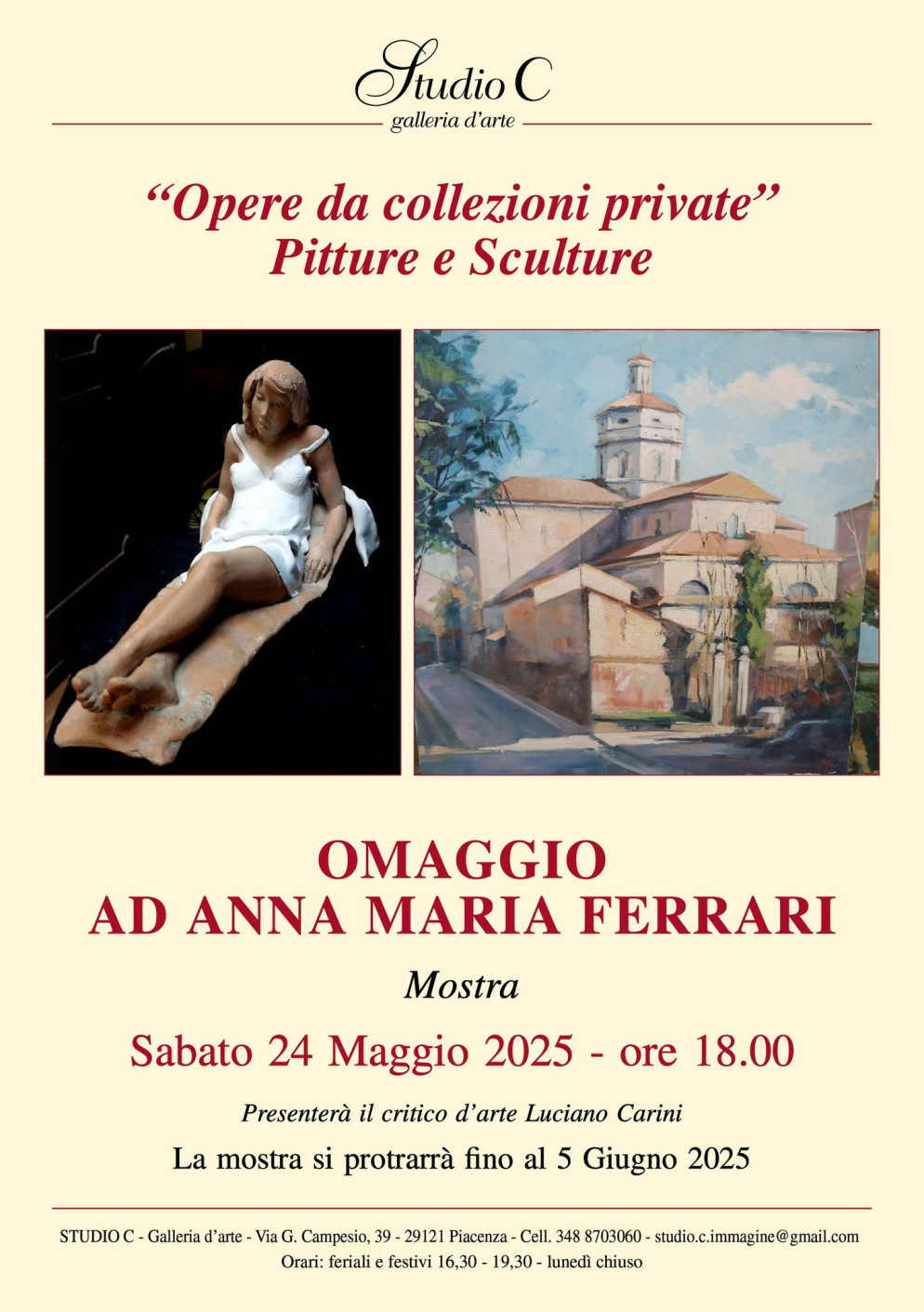 Alla Galleria d'Arte Contemporanea Studio C, sabato 24 maggio alle ore 18.00, si terrà l'inaugurazione della mostra "Omaggio ad Anna Maria Ferrari - Opere da collezioni private".