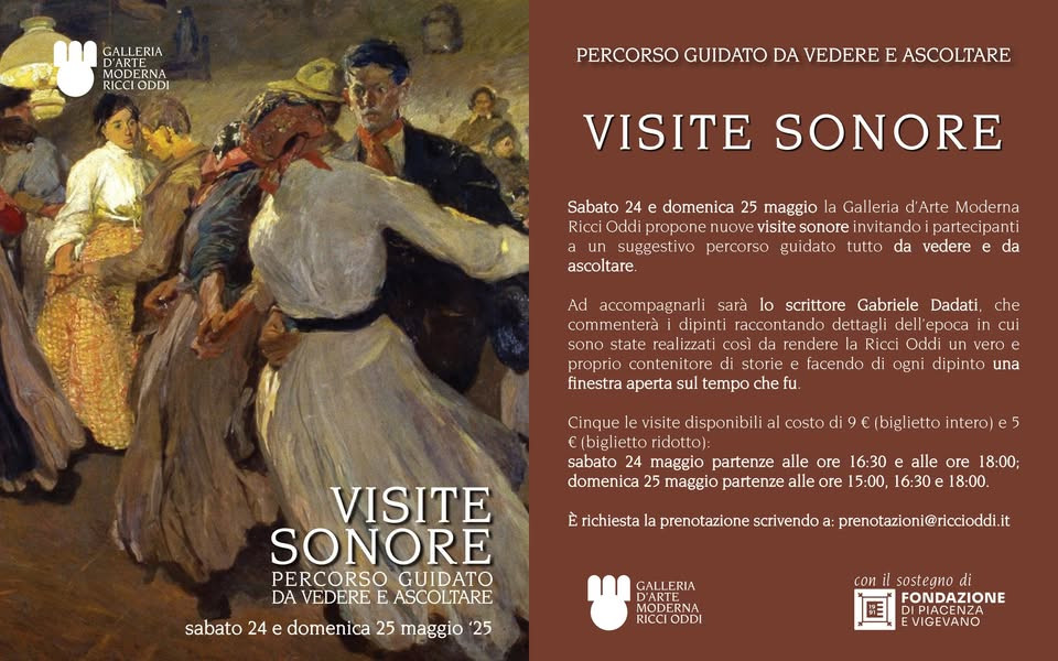 La Galleria d’Arte Moderna Ricci Oddi propone, nelle giornate di sabato 24 e domenica 25 maggio, un'affascinante esperienza immersiva con le Visite Sonore, un percorso guidato pensato per coinvolgere vista e udito, trasformando l’esplorazione delle opere in un vero e proprio viaggio nel tempo.