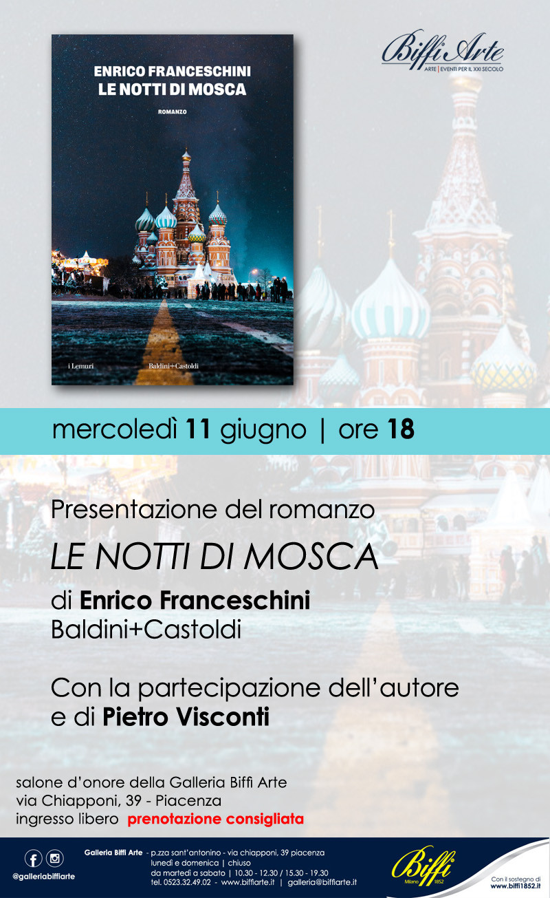 Mercoledì 11 giugno alle ore 18.00, il Salone d’Onore della Galleria Biffi Arte ospiterà la presentazione del romanzo Le notti di Mosca di Franceschini Enrico (edito da Baldini & Castoldi).