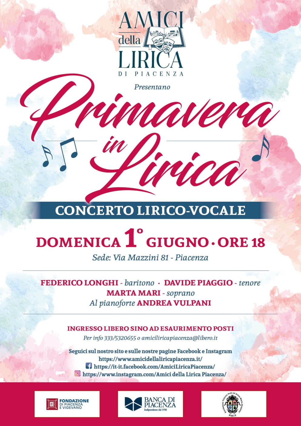 Domenica 1° giugno alle ore 18.00, presso la sede degli Amici della Lirica in via Mazzini 81, si terrà Primavera in Lirica, un appuntamento musicale pensato per celebrare la grande tradizione operistica italiana.