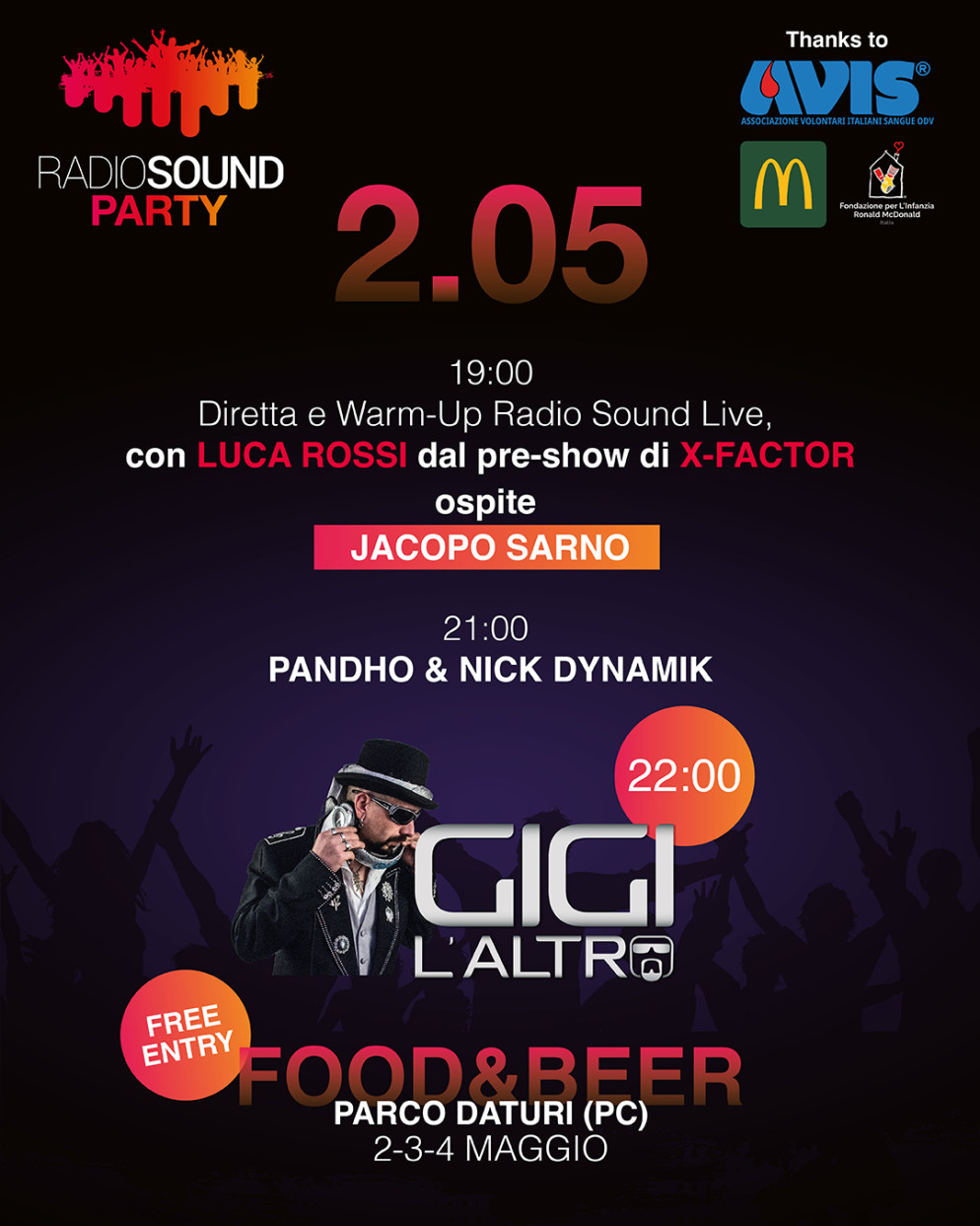 Il weekend si aprirà il 2 maggio con GIGI L'ALTRO, che porterà sul palco tutta la magia dei suoni di Gigi D’Agostino. Il 3 maggio sarà la volta di MIGHTY NINETIES, per un tuffo nelle hit che hanno fatto ballare intere generazioni tra gli anni ’90 e 2000.