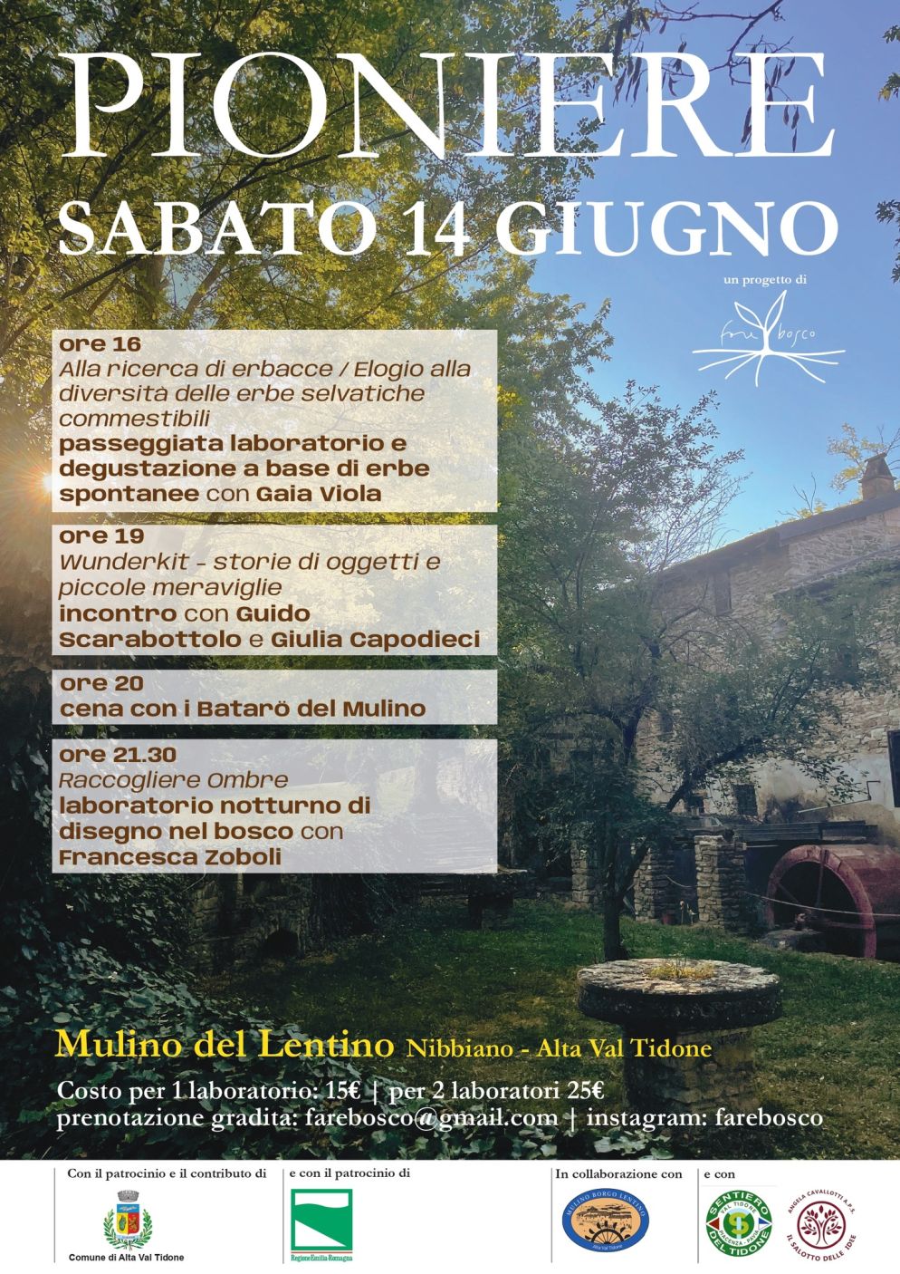 Sabato 14 giugno, presso il Mulino del Lentino a Nibbiano (Alta Val Tidone), si svolge Pioniere, una giornata tra natura, creatività e gusto.