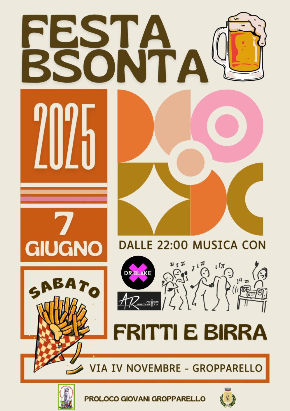 Sabato 7 giugno in via IV Novembre a Gropparello arriva la Festa Bsonta, l’appuntamento da non perdere organizzato dalla Proloco Giovani Gropparello!