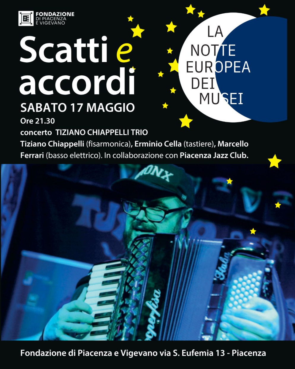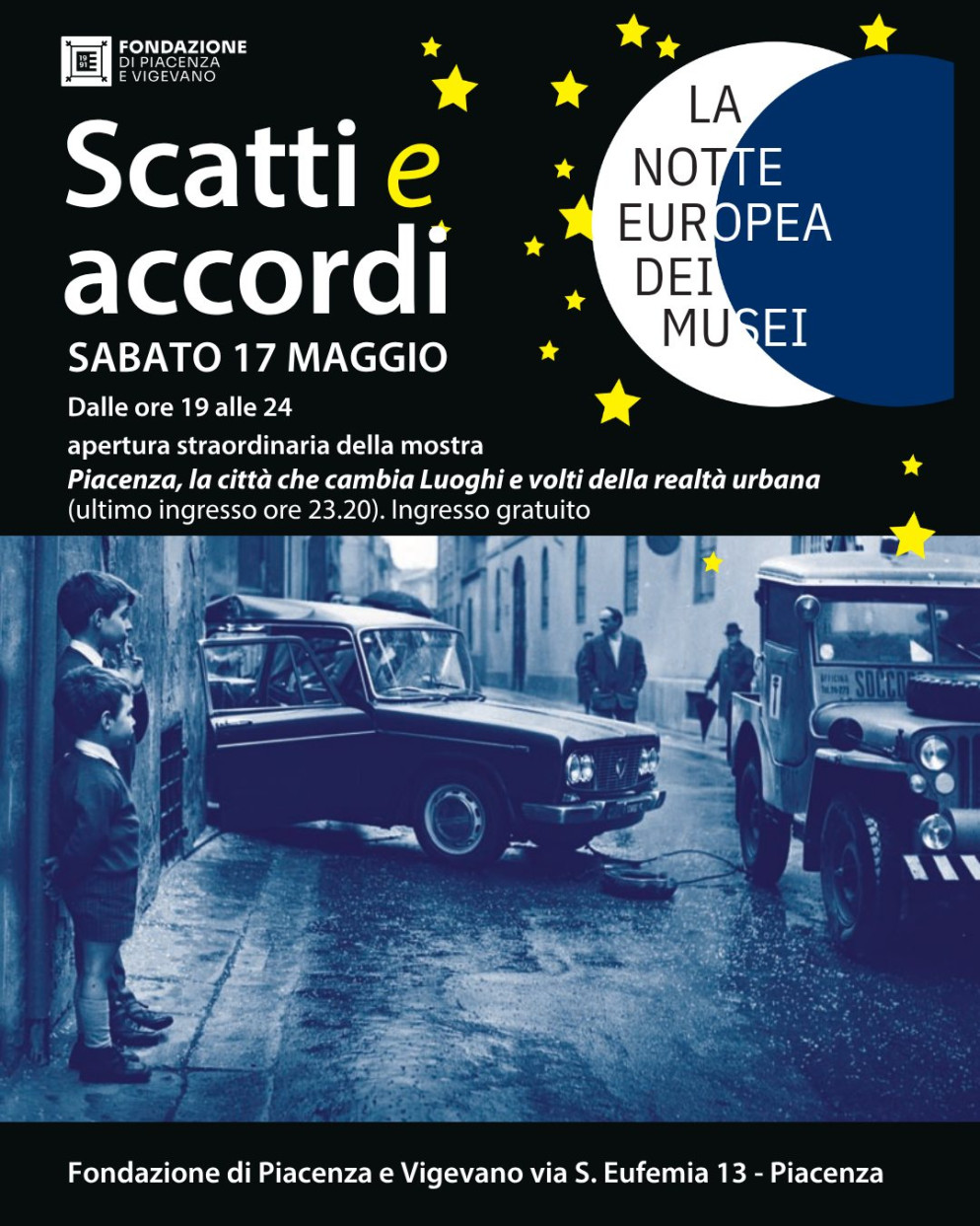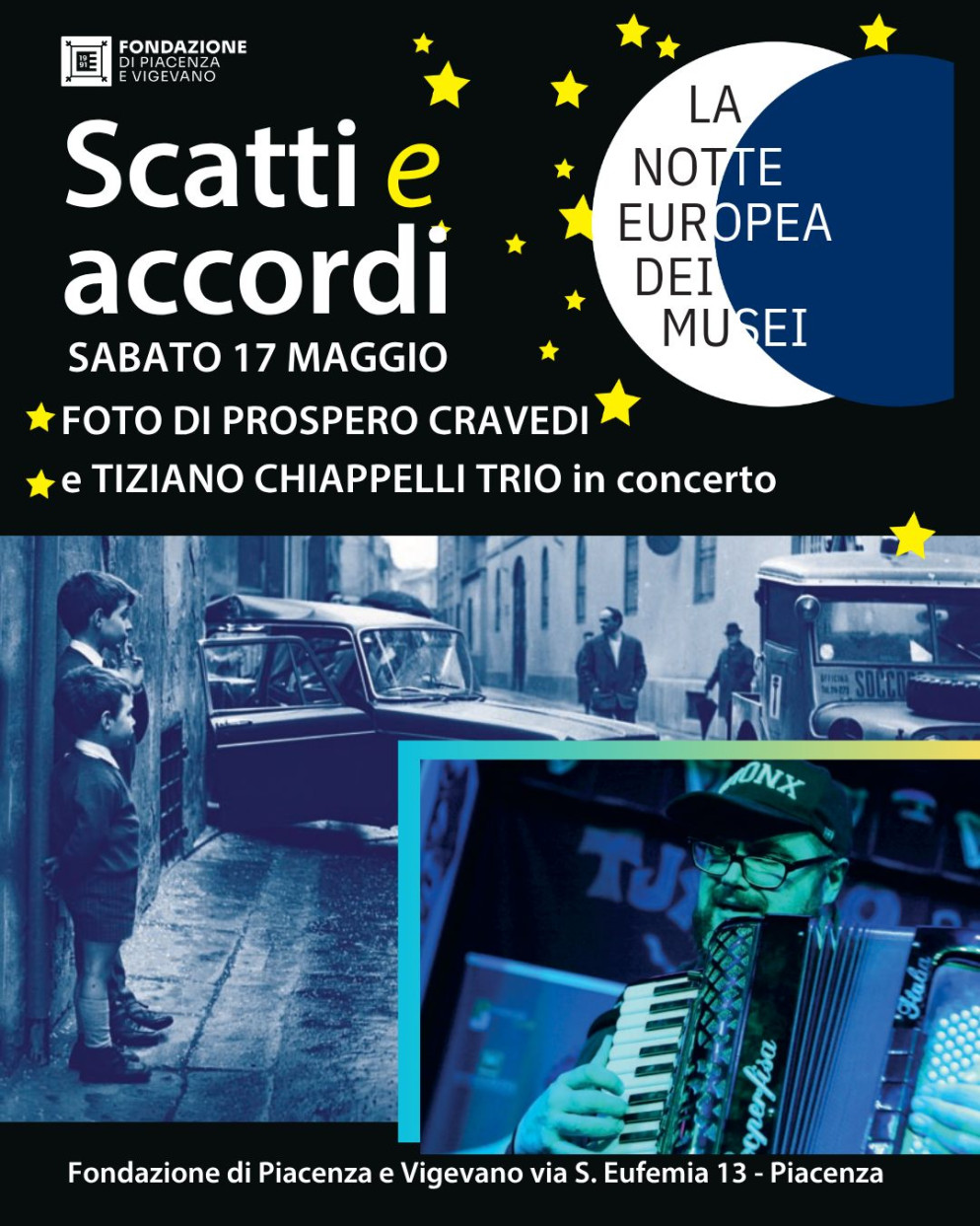 In occasione della Notte Europea dei Musei, sabato 17 maggio la Fondazione di Piacenza e Vigevano propone a Palazzo Rota Pisaroni l’evento “Scatti e accordi”, un appuntamento che unisce cultura, fotografia e musica dal vivo.