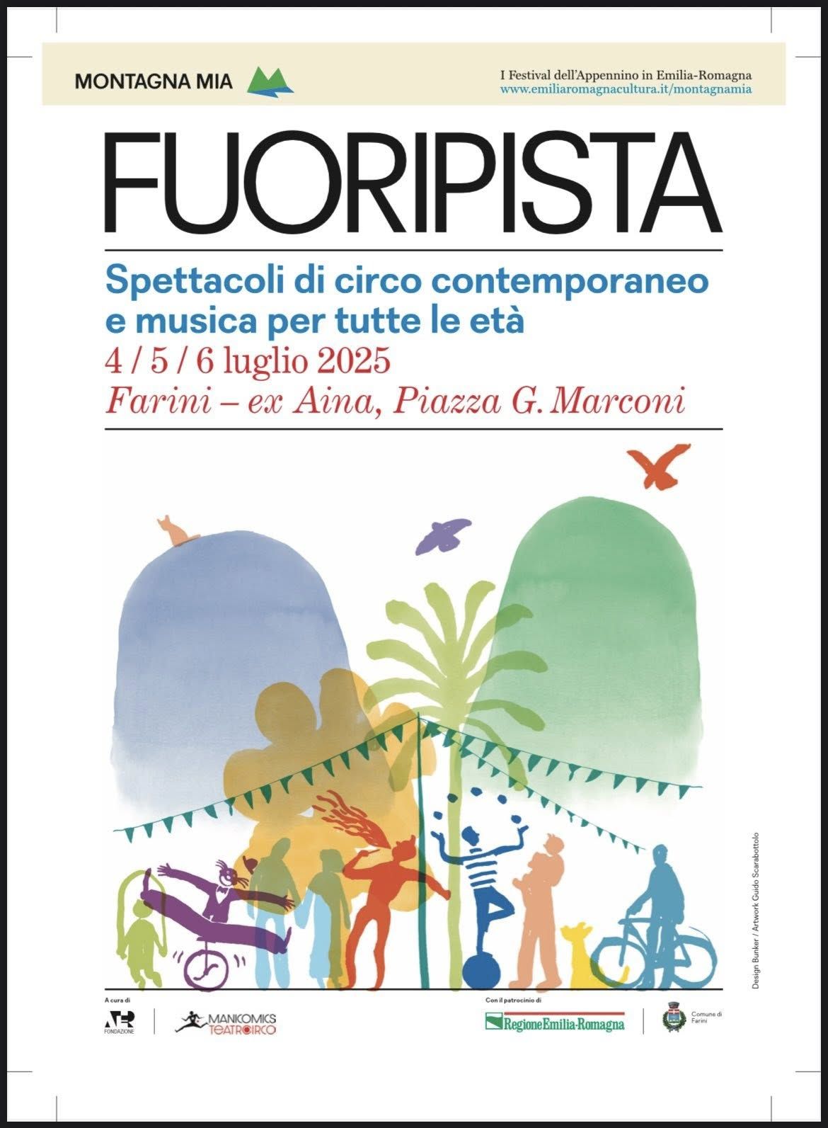 La tappa di Farini, ospitata in piazza G. Marconi, propone un programma curato dalla compagnia piacentina Manicomics, che include spettacoli, musica, laboratori e momenti di gioco aperti a tutta la comunità.