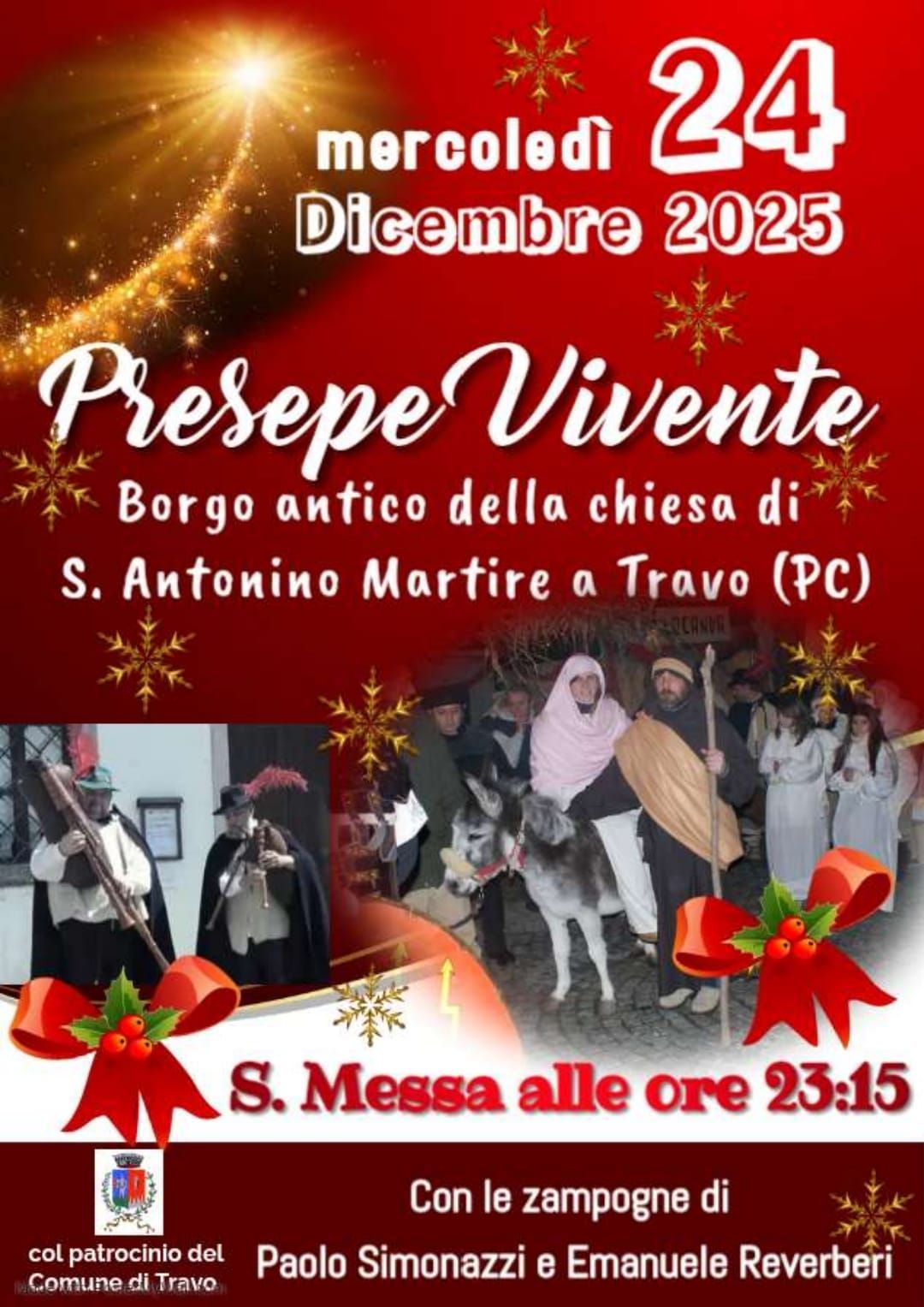 Mercoledì 24 dicembre, presso il Borgo Antico della Chiesa di Sant’Antonino Martire a Travo, si terrà il Presepe Vivente.