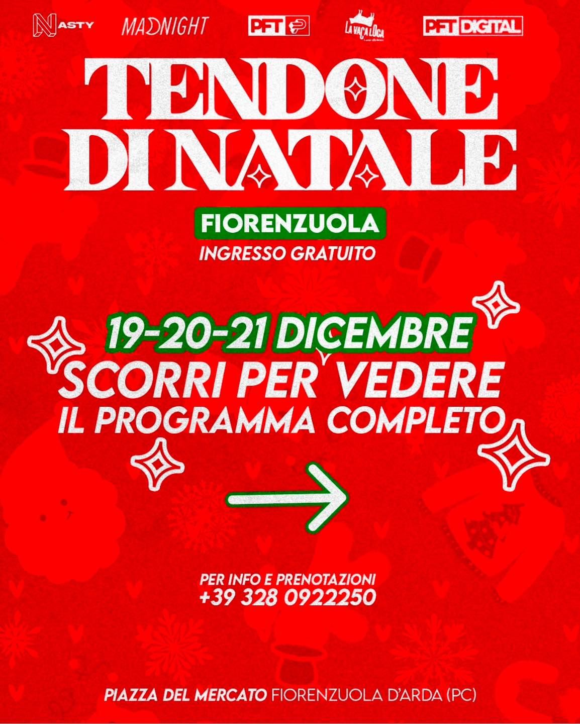 Tre giorni di festa ti aspettano al Tendone di Natale in Piazza del Mercato a Fiorenzuola: dal 19 al 21 dicembre musica, street food e tante occasioni per vivere insieme l’atmosfera natalizia nel cuore della città.