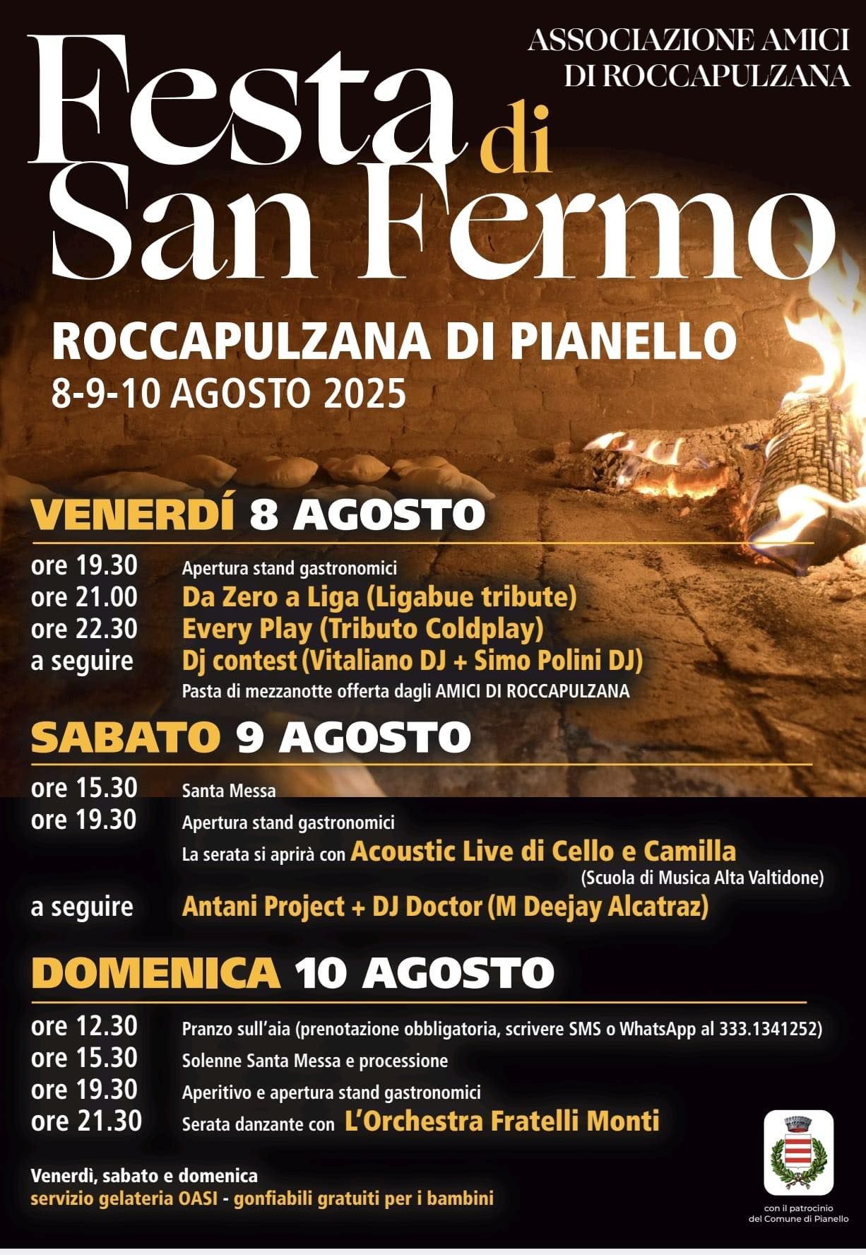 Da venerdì 8 a domenica 10 agosto torna a Roccapulzana uno degli appuntamenti più amati dell’estate pianellese: la Festa di San Fermo.
