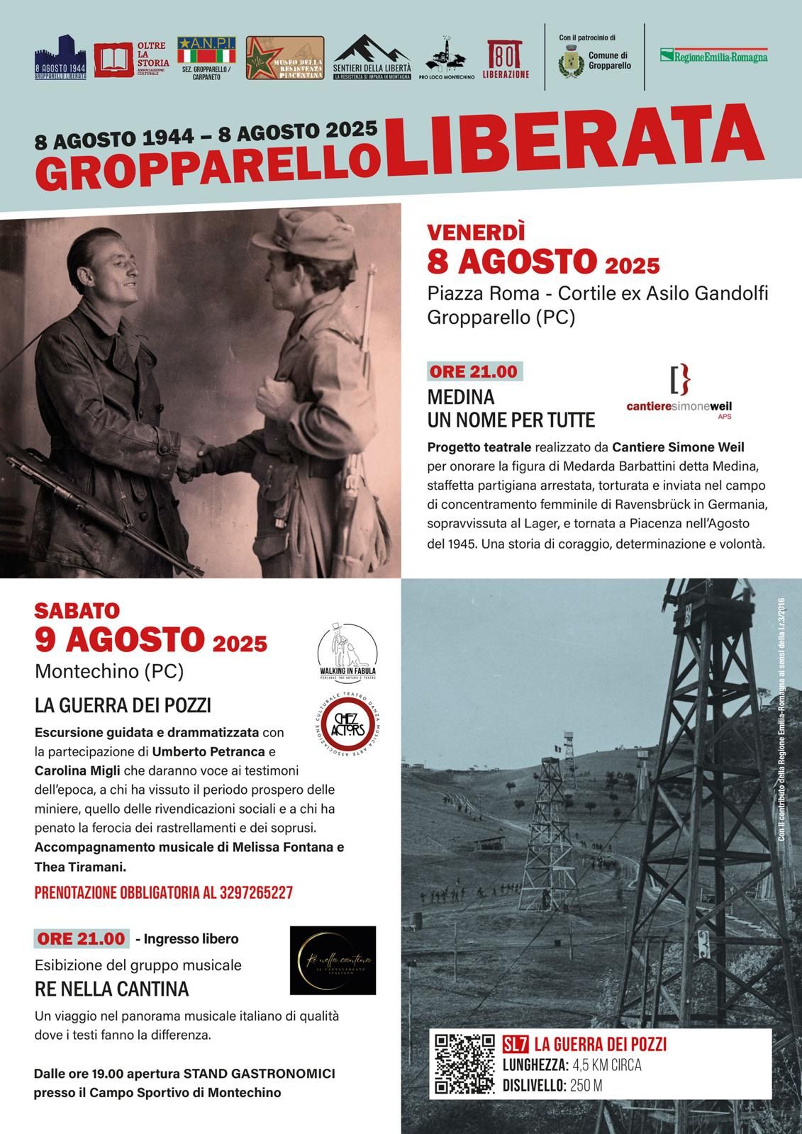 A ottantuno anni da quell’impresa di coraggio e libertà, torna "Gropparello Liberata", una rassegna di eventi promossa da Oltre la Storia – Associazione Culturale, ANPI Gropparello e Pro Loco Montechino, per tenere viva la memoria della Resistenza.