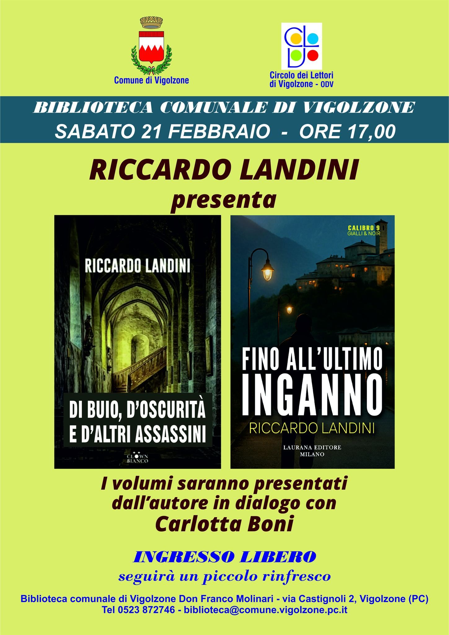 Sabato 21 febbraio alle ore 17.00, la Biblioteca Comunale di Vigolzone – Centro Polivalente ospita l’incontro con Riccardo Landini, autore di riferimento nel panorama del giallo italiano contemporaneo.